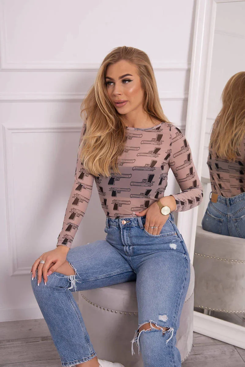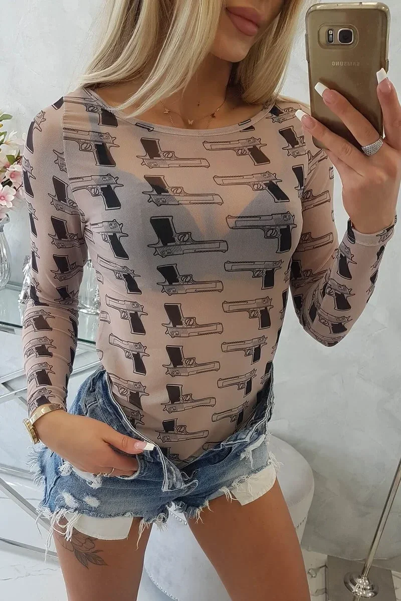 Prezentujemy Państwu bluzkę body. Bluzka posiada nadruk. Bluzka wykonana jest s prześwitującego materiału. Bardzo modna i stylowa. Rozmiar jest uniwersalny i będzie odpowiedni dla Pań noszących rozmiar XS, S i M.