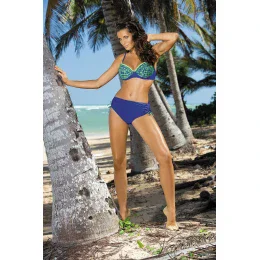 Tyto dvoudílné plavky jsou určeny pro ženy s velkými, plnými ňadry. podprsenka je vyztužená pěnou, prsa nezvětšuje, ale přibližuje je k sobě a pěkně tvaruje. košíčky jsou hluboké a dobře stavěné, sbírají a podporují poprsí. podprsenka má podšití, zapíná se na přezku. Vzorovaná látka dodává charakter. ramínka jsou nastavitelná. součástí soupravy jsou plnější kalhotky s praktickým zavazováním na bocích, díky kterému je lze snadno změnit na šortky nebo klasické kalhotky. jsou z hladké látky, neprosvítají. modelují bříško a hýždě.