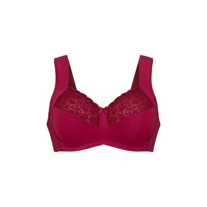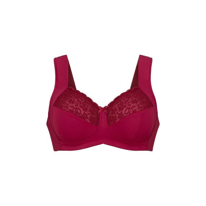 Pohodlná, měkká podprsenka bez kostic značky Anita, určená pro ženy s velkými prsy. Vyrobená z květinové, elastické krajky podšité elastickým tylem a příjemného mikrovlákna.