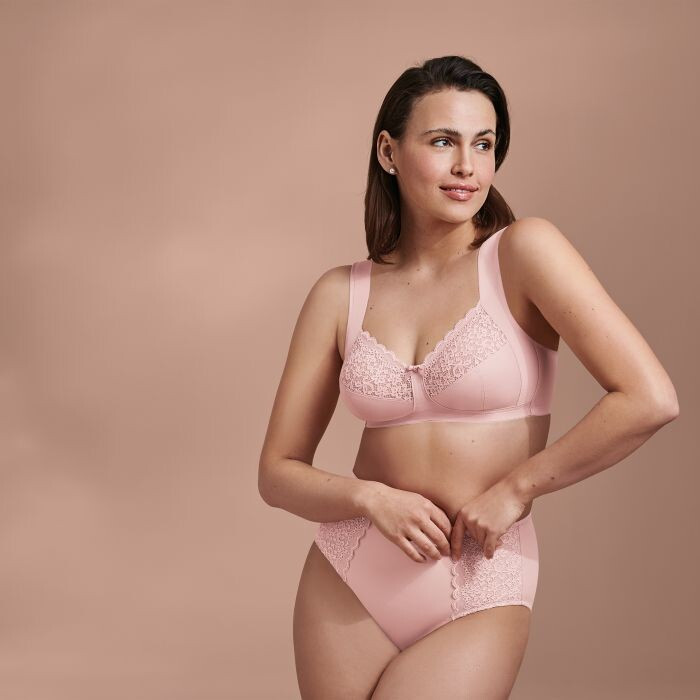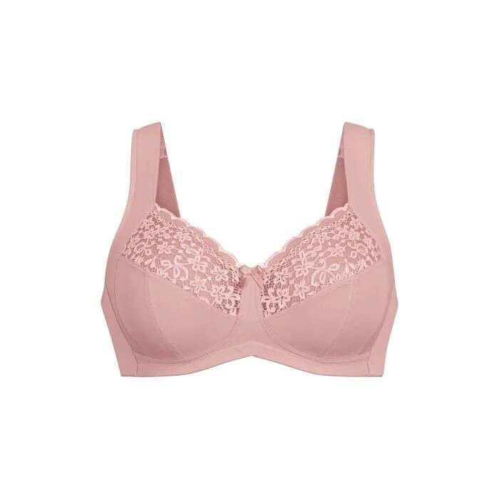 Pohodlná, měkká podprsenka bez kostic značky Anita, určená pro ženy s velkými prsy. Vyrobená z květinové, elastické krajky podšité elastickým tylem a příjemného mikrovlákna.
