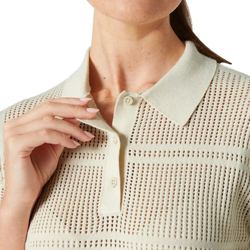 Dámské polo tričko Salt Knit bylo vytvořeno s ohledem na letní námořnický styl. Krátký rukáv, lehká tkanina a námořnický odkaz vám zajistí pohodlí u vody i mimo ni.
