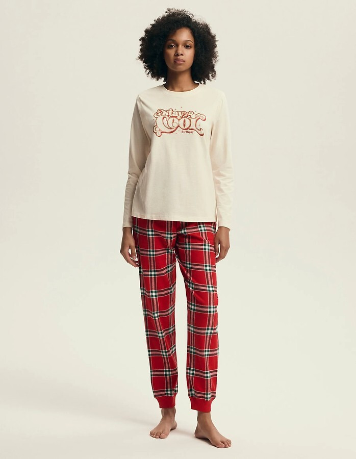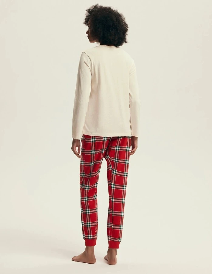 - dlouhé kostkované flanelové kalhoty jako doplněk soupravy
