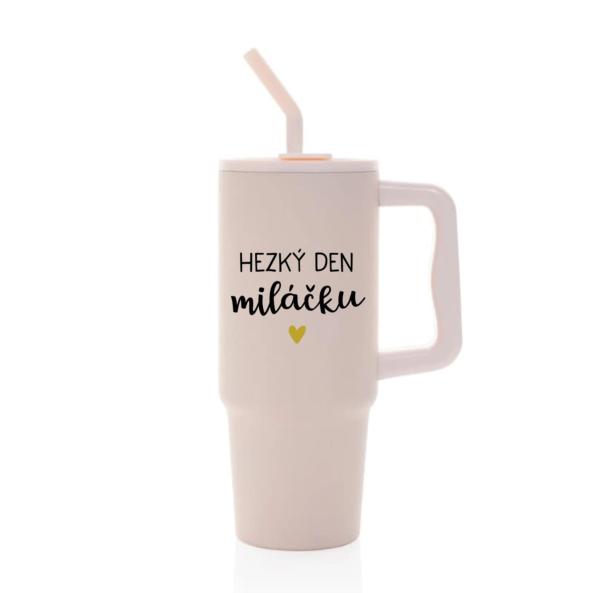 Hledáš ideální hrnek na cesty, do práce nebo na lenošení doma? Náš stylový termohrnek o objemu 900 ml s praktickým uchem a brčkem tě nadchne nejen velikostí, ale i milým potiskem „HEZKÝ DEN, MILÁČKU“, který ti každý den zlepší náladu.