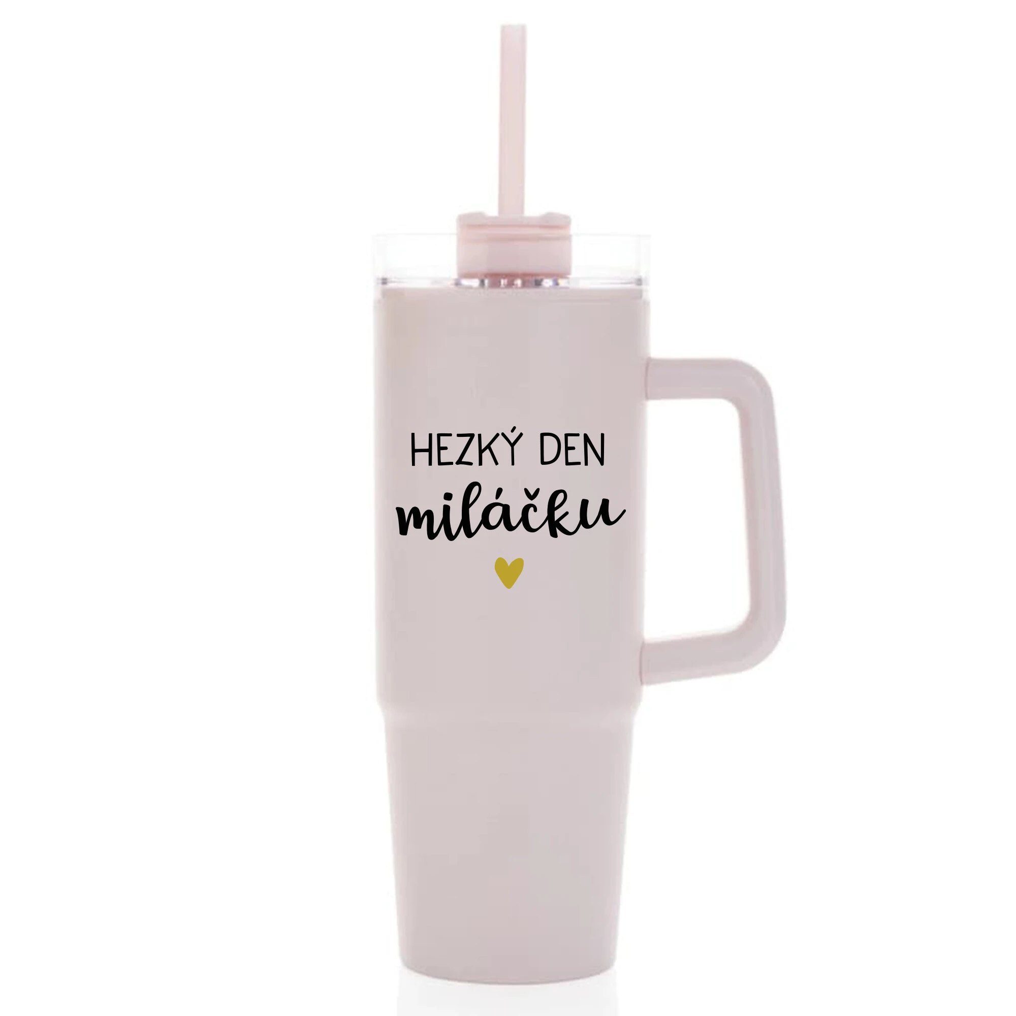 HEZKÝ DEN MILÁČKU - růžový cestovní termohrnek s průhledným víčkem 900 ml