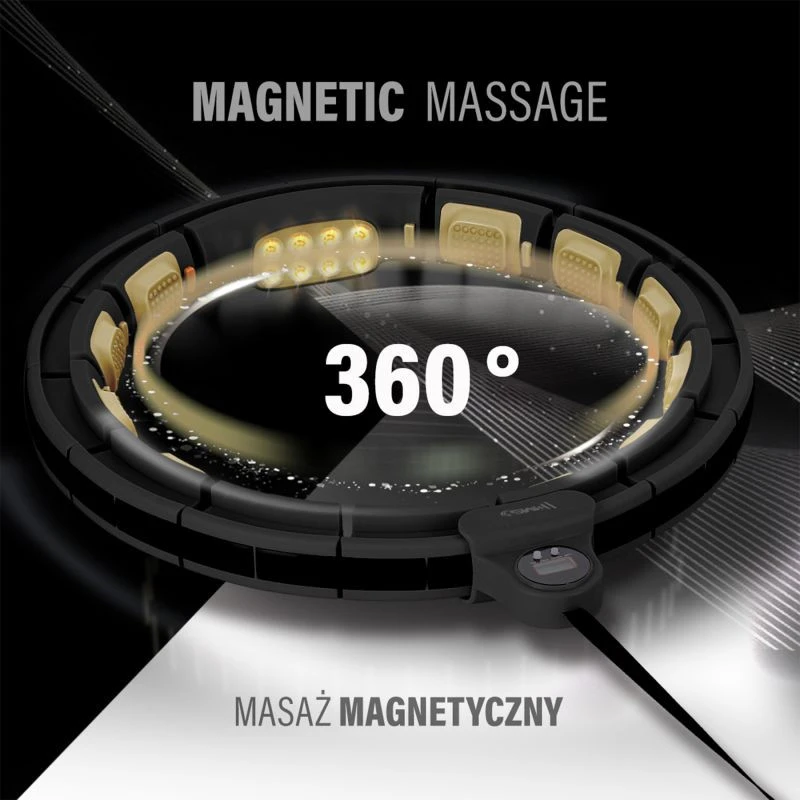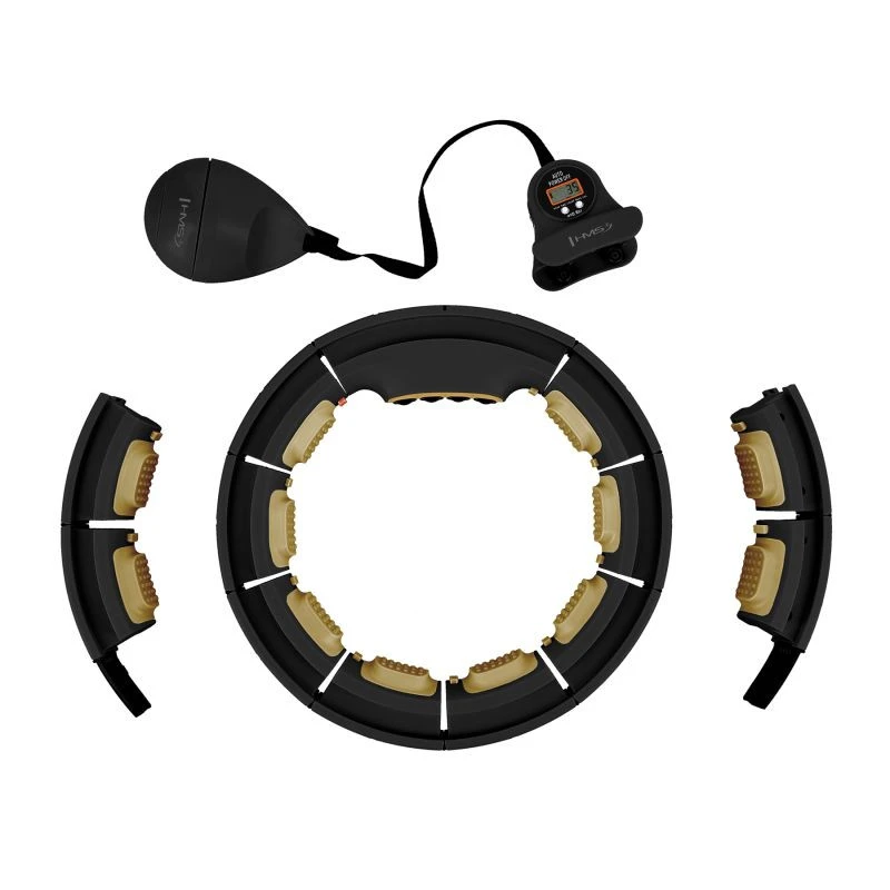 HHM13 NOVÝ HULA HOP ČERNÝ/ZLATÝ S MAGNETY A ZÁVAŽÍM + POČÍTADLO HMS