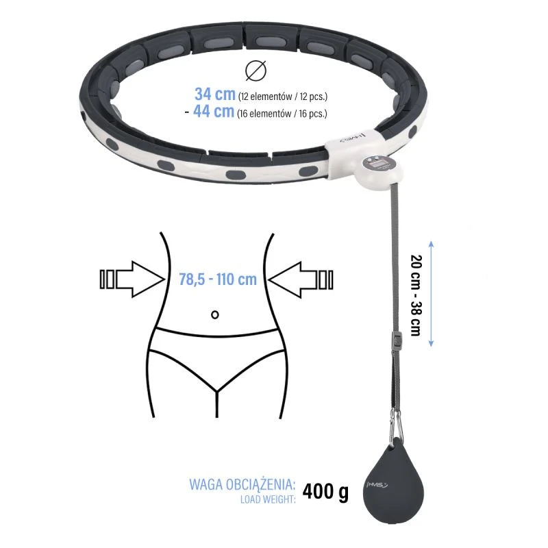 HHM15 HULA HOP ČERNÁ S MAGNETEM A ZÁVAŽÍM + POČÍTADLO HMS