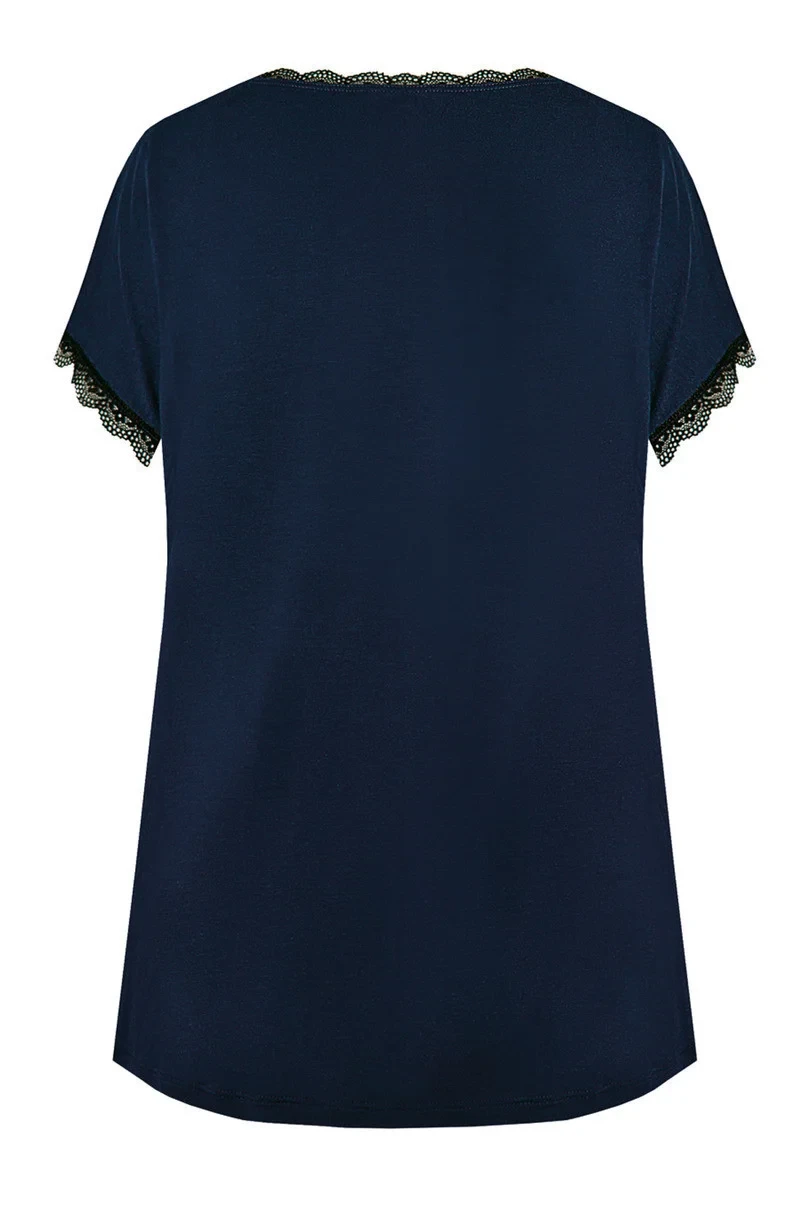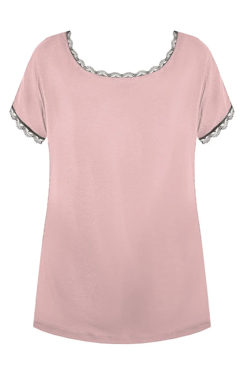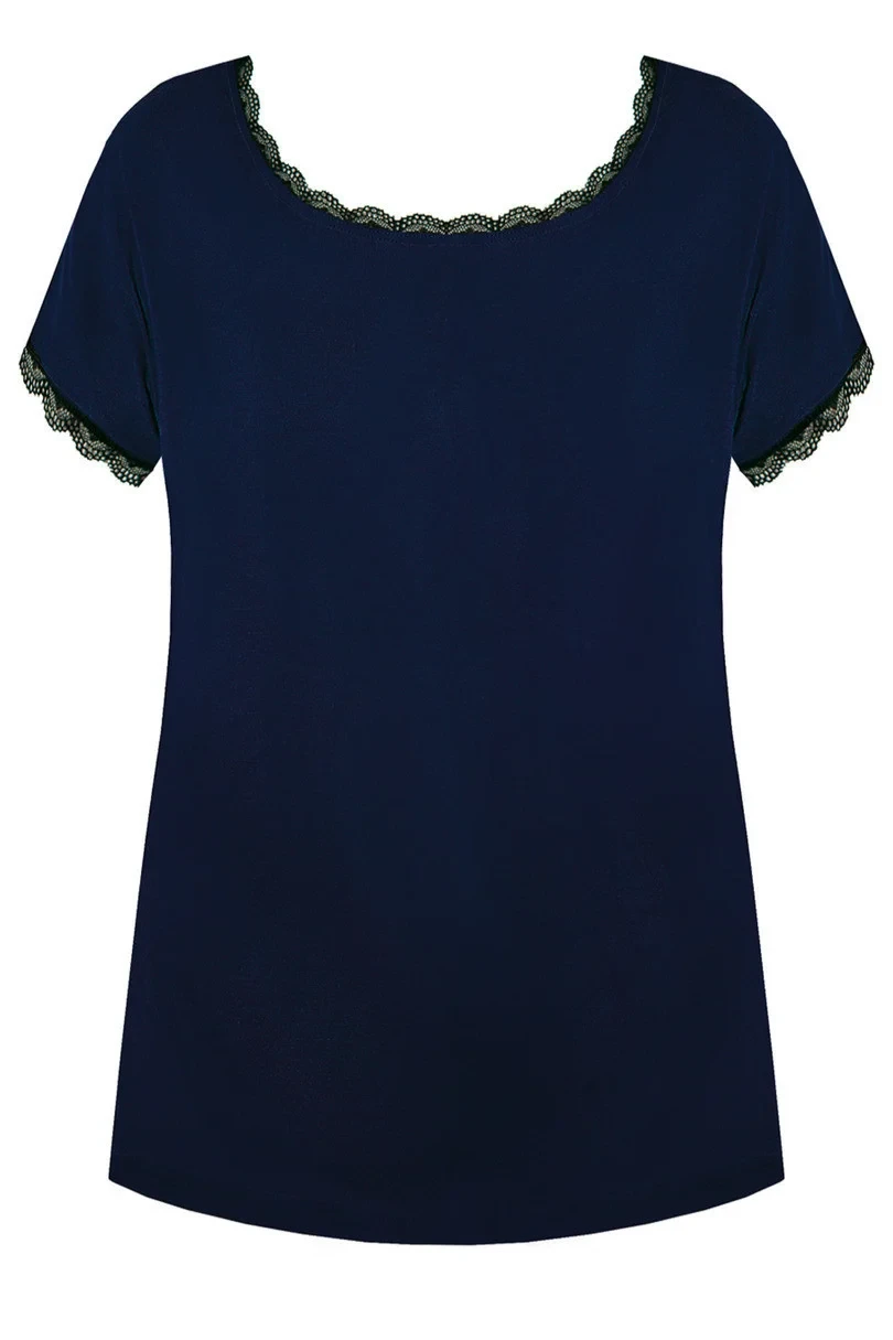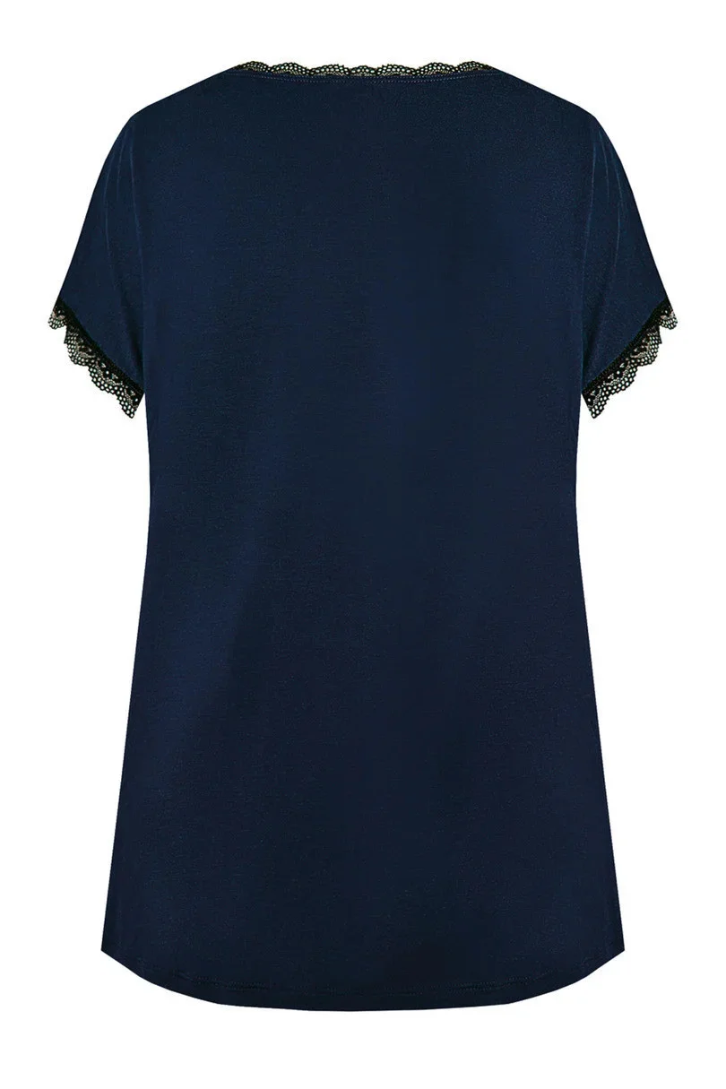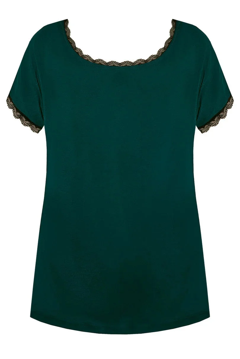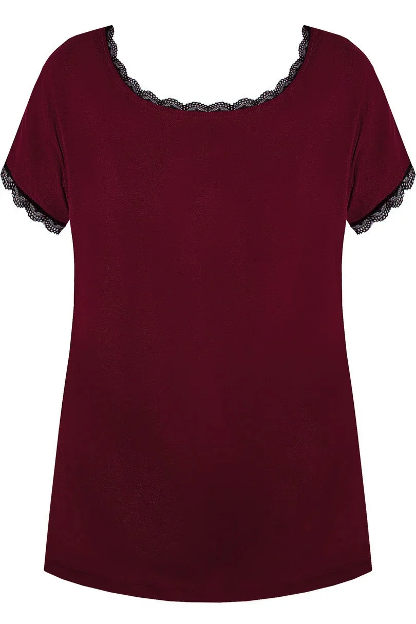Dámská viskózová halenka s jemnými krajkovými lemovanými rukávy, kulatý výstřih.