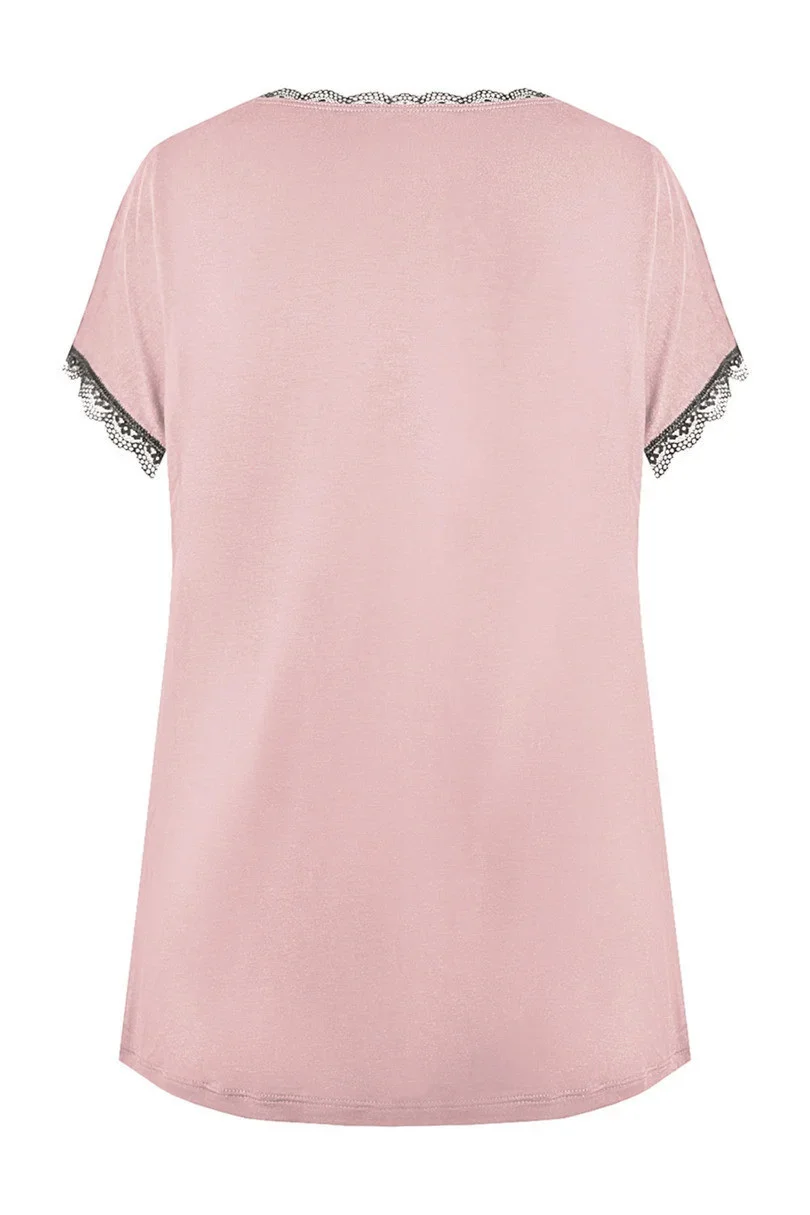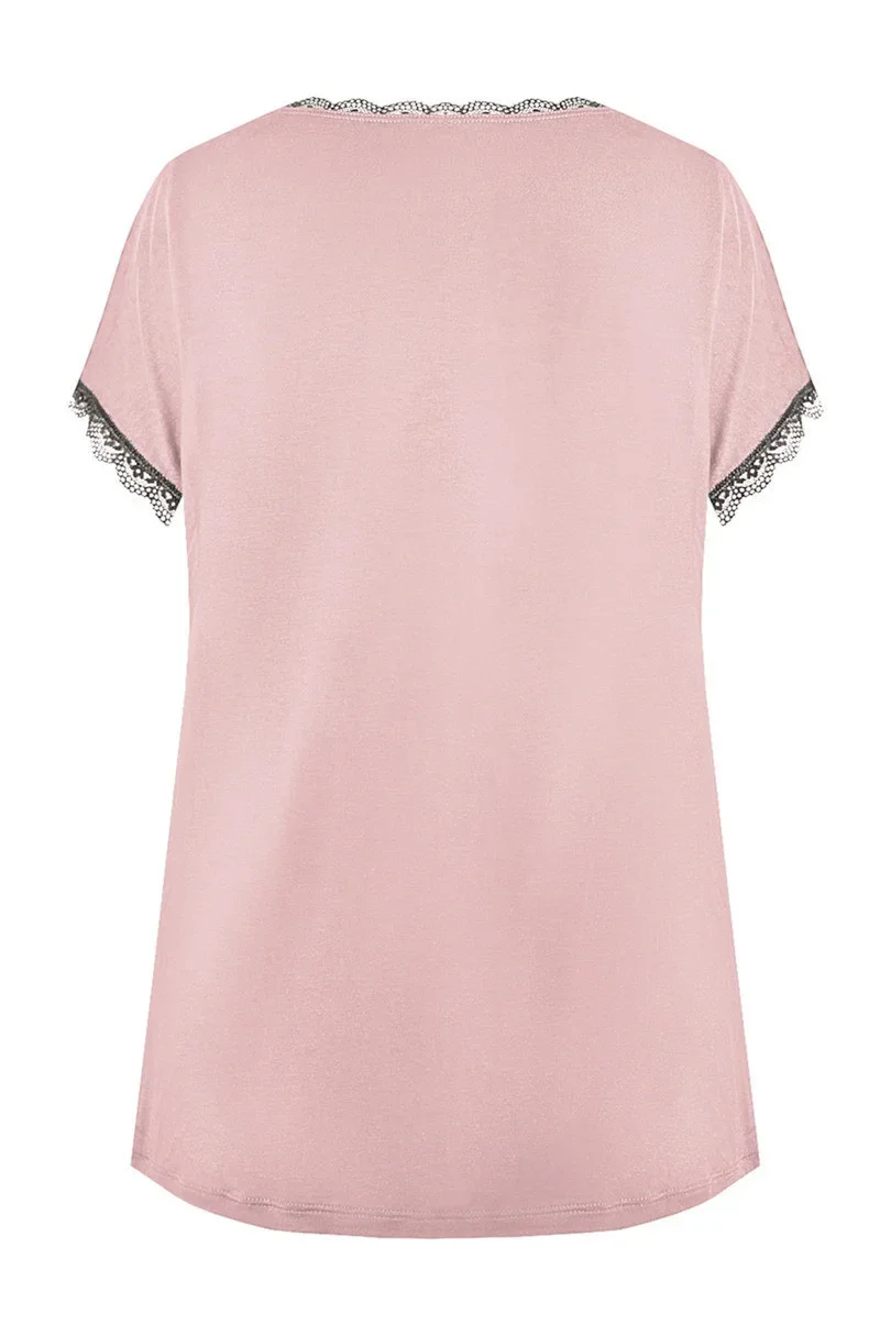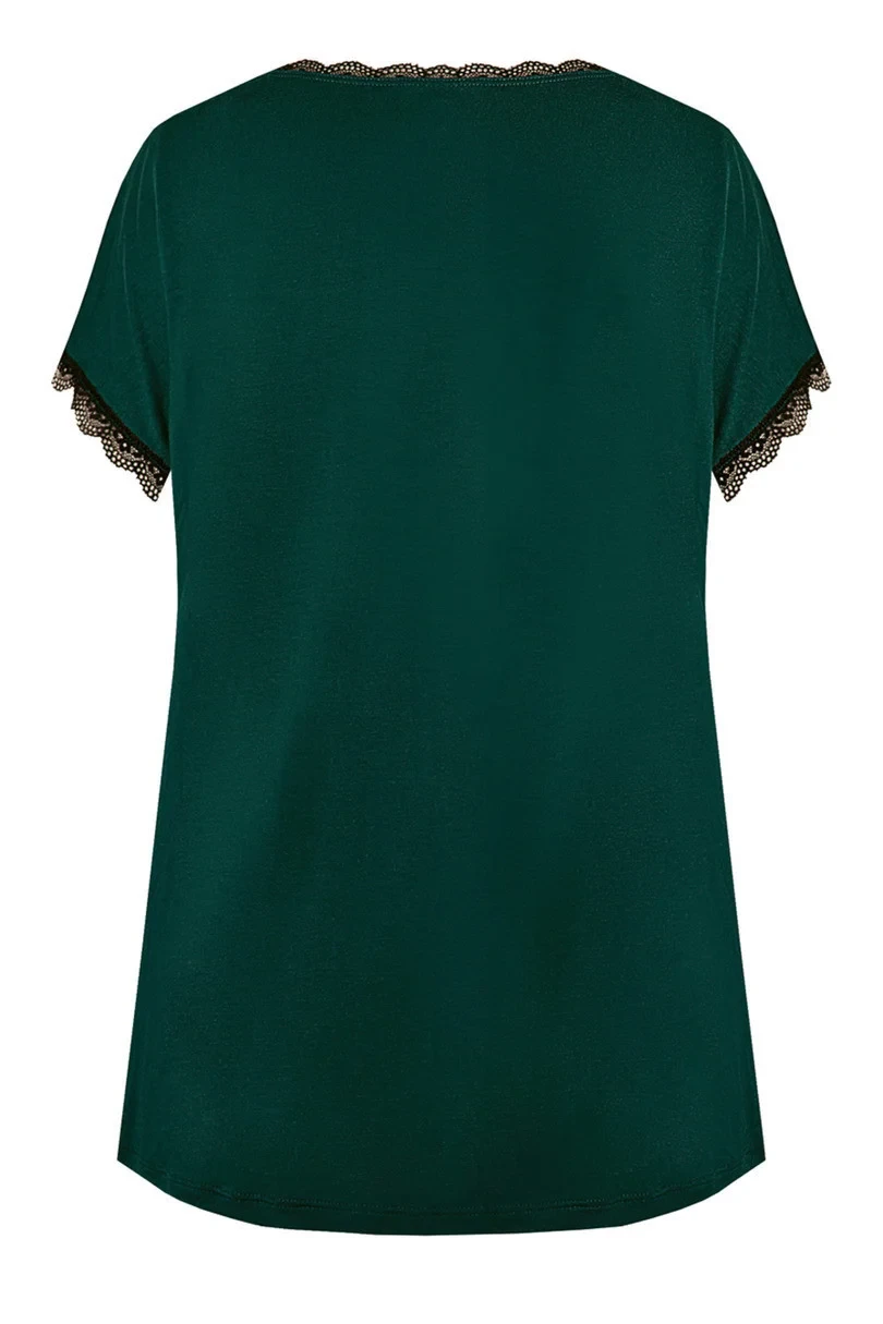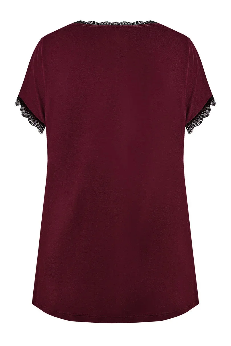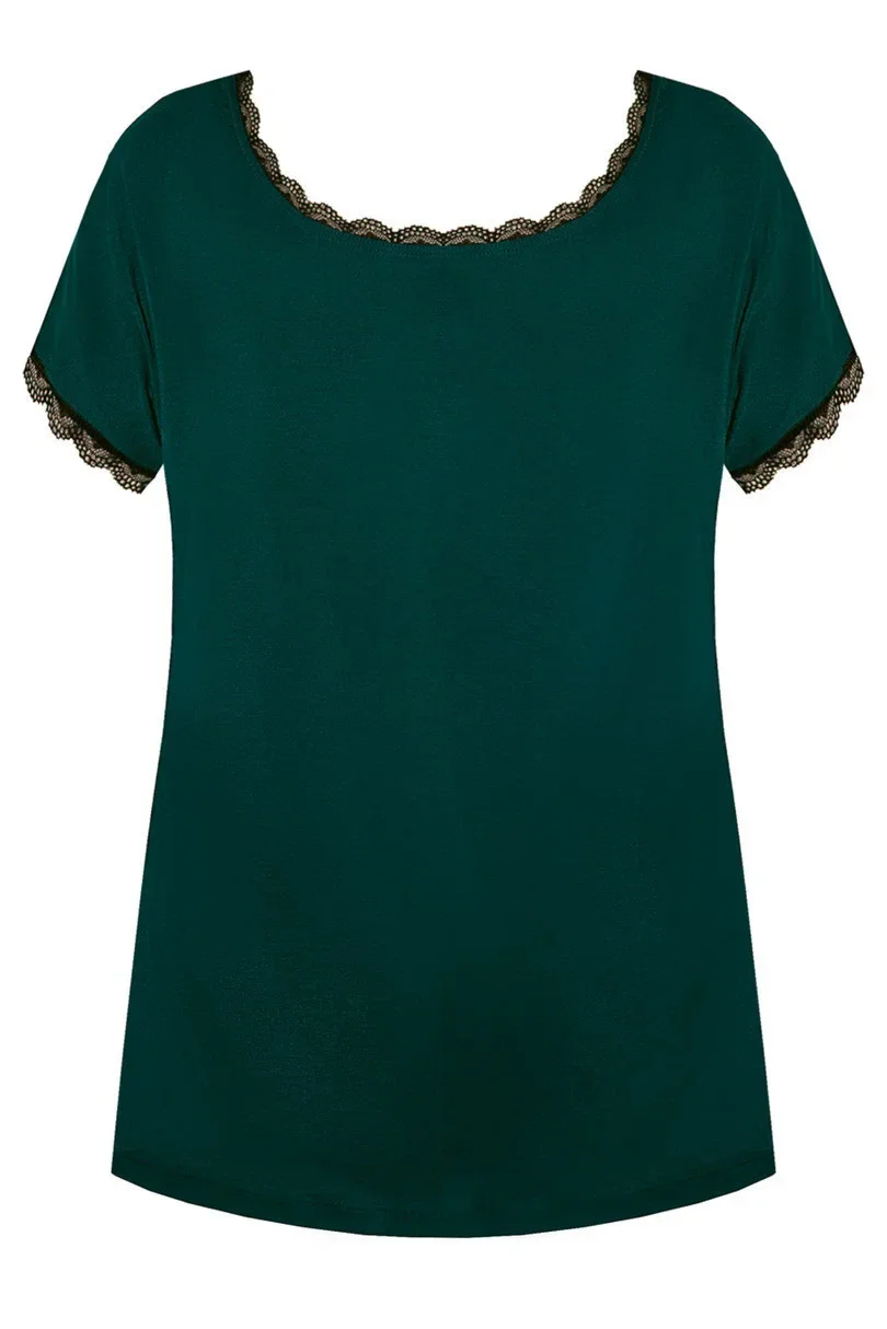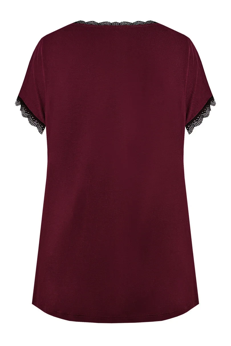 Dámská viskózová halenka s jemnými krajkovými lemovanými rukávy, kulatý výstřih.