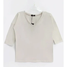 Hladká dámská halenka s 3/4 rukávy a výstřihem ve tvaru písmene "V".