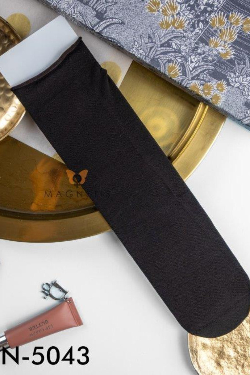 Černé hladké ponožky Magnetis. jsou vyrobeny z měkké, na dotek příjemné bavlny s přídavkem elastických vláken, dokonale se přizpůsobí chodidlu a zajistí pohodlí po celý den. skvěle se hodí jak ke každodennímu oblečení, tak jako okouzlující doplněk k elegantním outfitům. ideální k balerínám, mokasínámóm nebo nízkým botám.