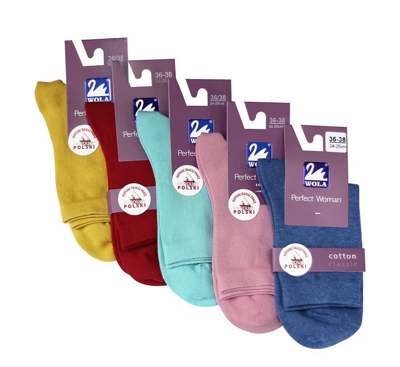 Jednobarevné dámské ponožky, které jsou vyrobené z velmi kvalitní bavlny s přídavkem syntetických přízí.