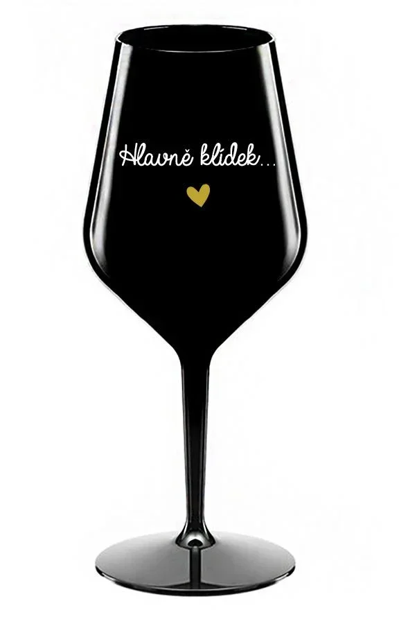 HLAVNĚ KLÍDEK... - černá nerozbitná sklenice na víno 470 ml