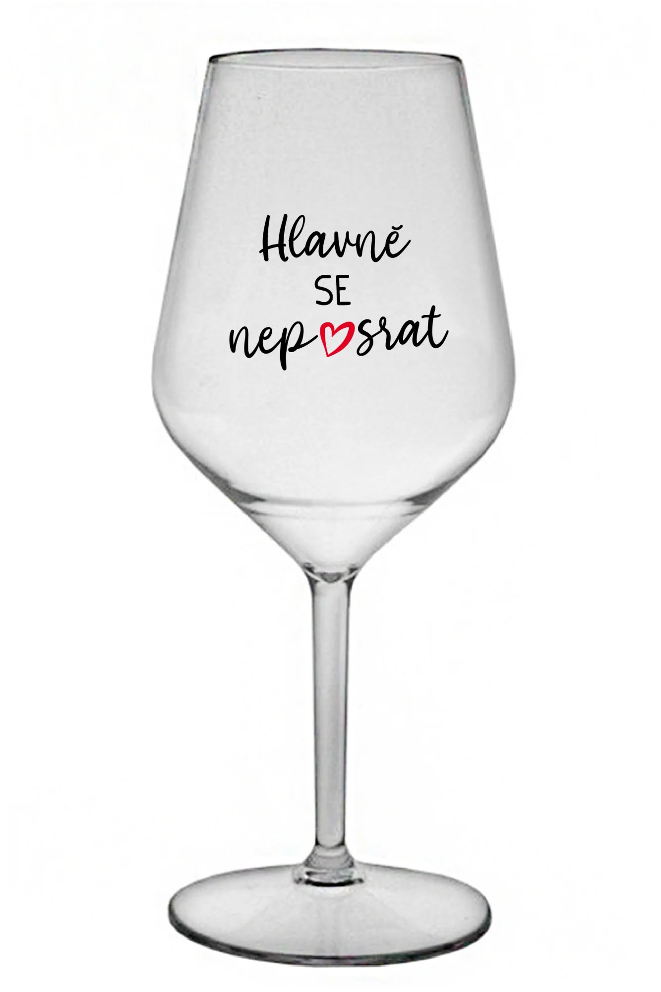 HLAVNĚ SE NEPOSRAT - čirá nerozbitná sklenice na víno 470 ml