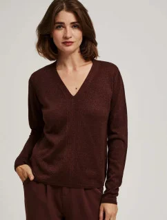 B304 Pletený svetr s výstřihem do V - tmavá čokoláda