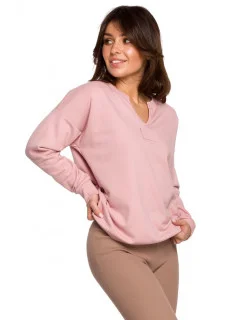 Dámský svetr s viskózou a výstřihem do V růžový