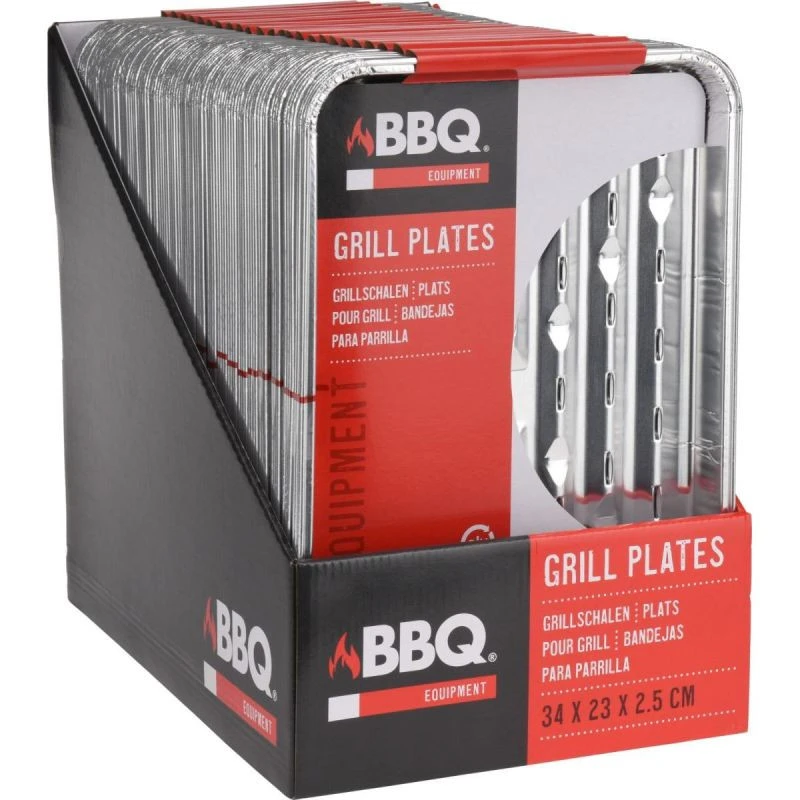 Chcete pozvat své přátele na grilování a hledáte vhodný sortiment? 34x23 cm 4 žáruvzdorné ALUMINIUM BBQ TABS jsou speciální talíře, na které můžete při grilování položit maso, zeleninu nebo jiné pokrmy!
