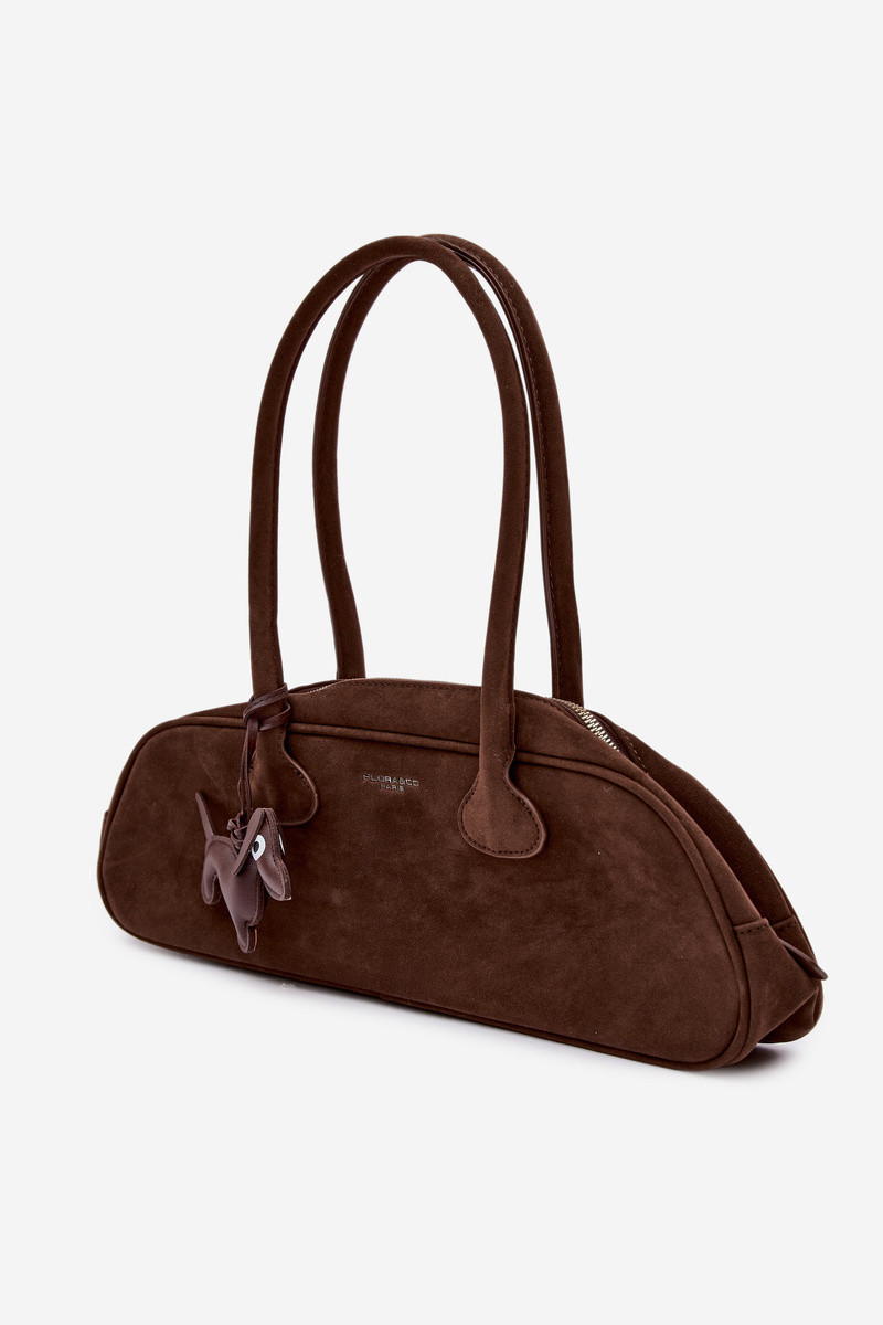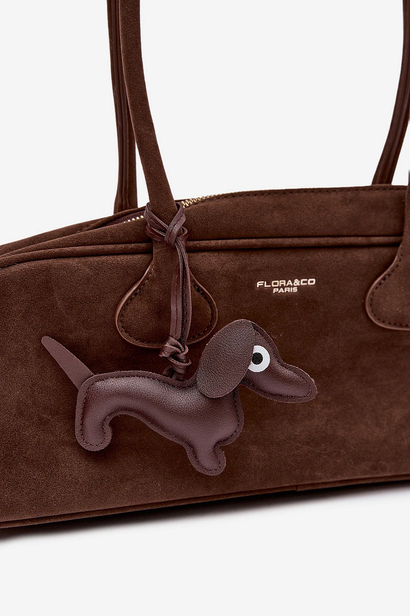 Hnědá baguette kabelka z imitace semiše s přívěskem jezevčík Annette