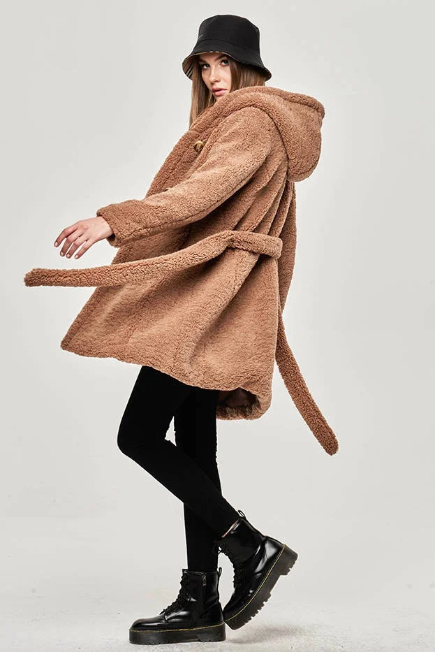 Hnědá dámská bunda "beránek" (GSQ2229)