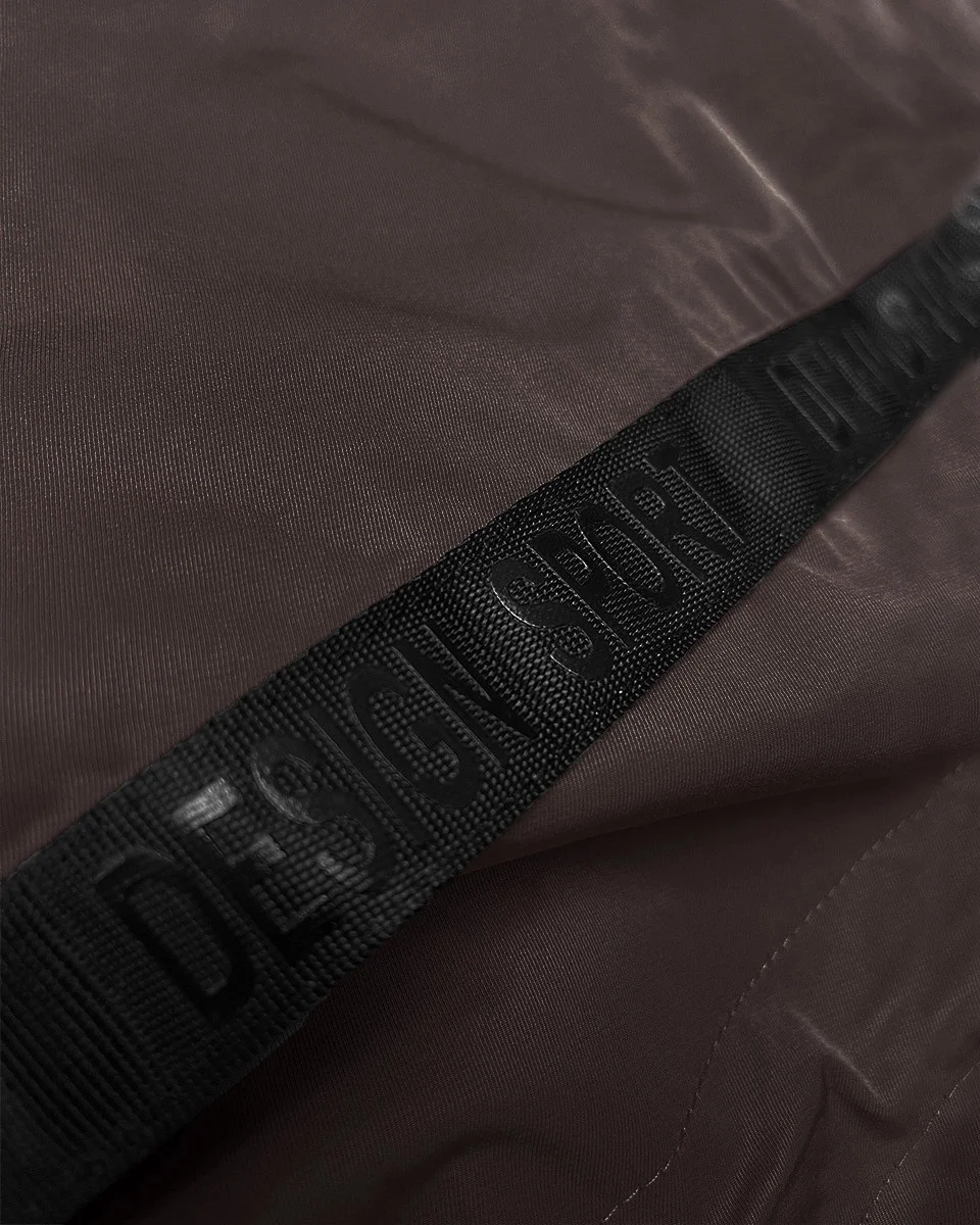 Bunda je zateplená tenkou vrstvou syntetické péřové výplně, má dvě kapsy a zapíná se zipem a panelem s patentkami. Model má kapuci, kterou není možné odepnout. V pase modelu je stahující šňůrka. Bundu je možné ve spodní části na bocích rozepnout. Model má délku do poloviny stehen.
