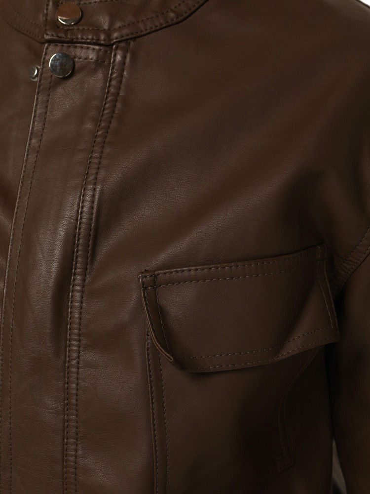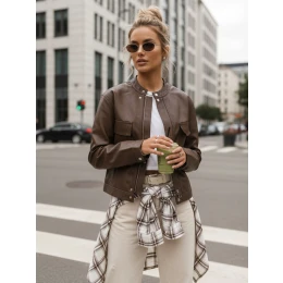 Hnědá dámská kožená bunda FashionStreet TY5540