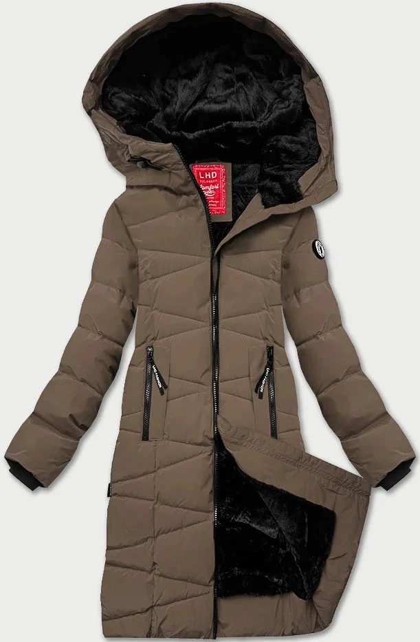 Hnědá dámská zimní bunda s kožešinovou podšívkou LHD (LHD-24578)