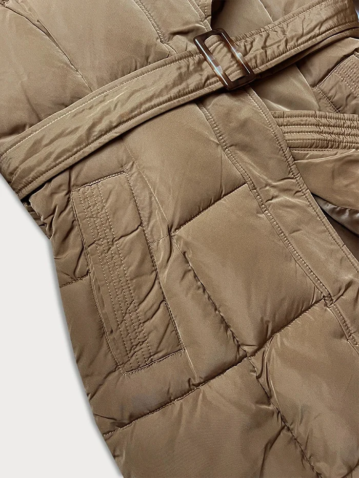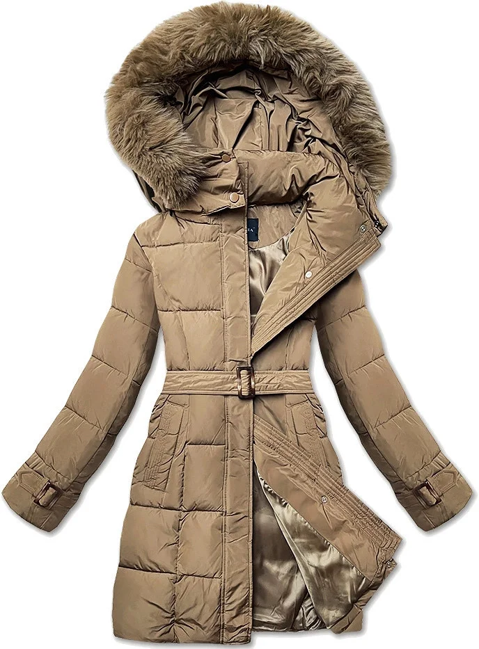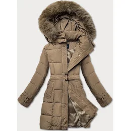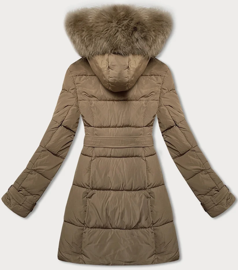 Hnědá dámská zimní bunda s ozdobnými páskami (23MY-208)