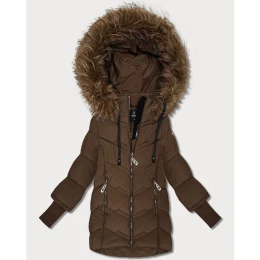 Hnědá dámská zimní bunda s úpletovými stahovacími lemy Goodlookin (KK60615)