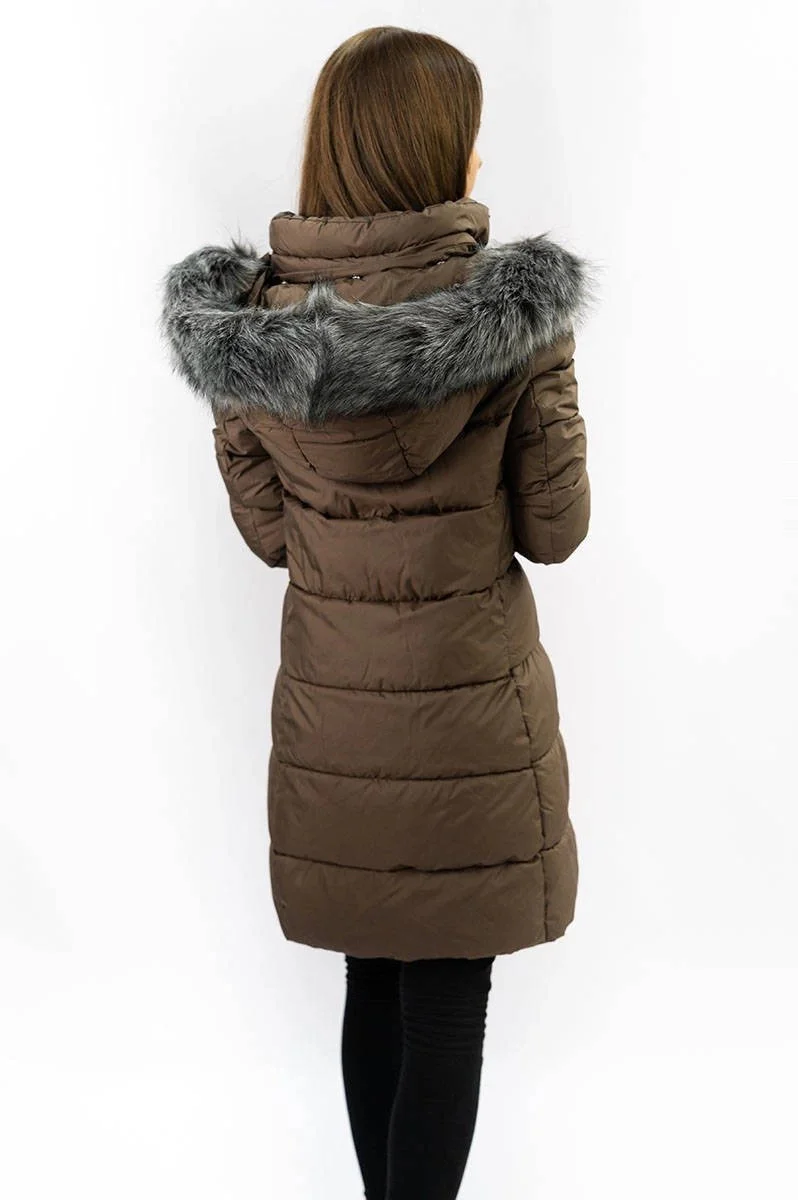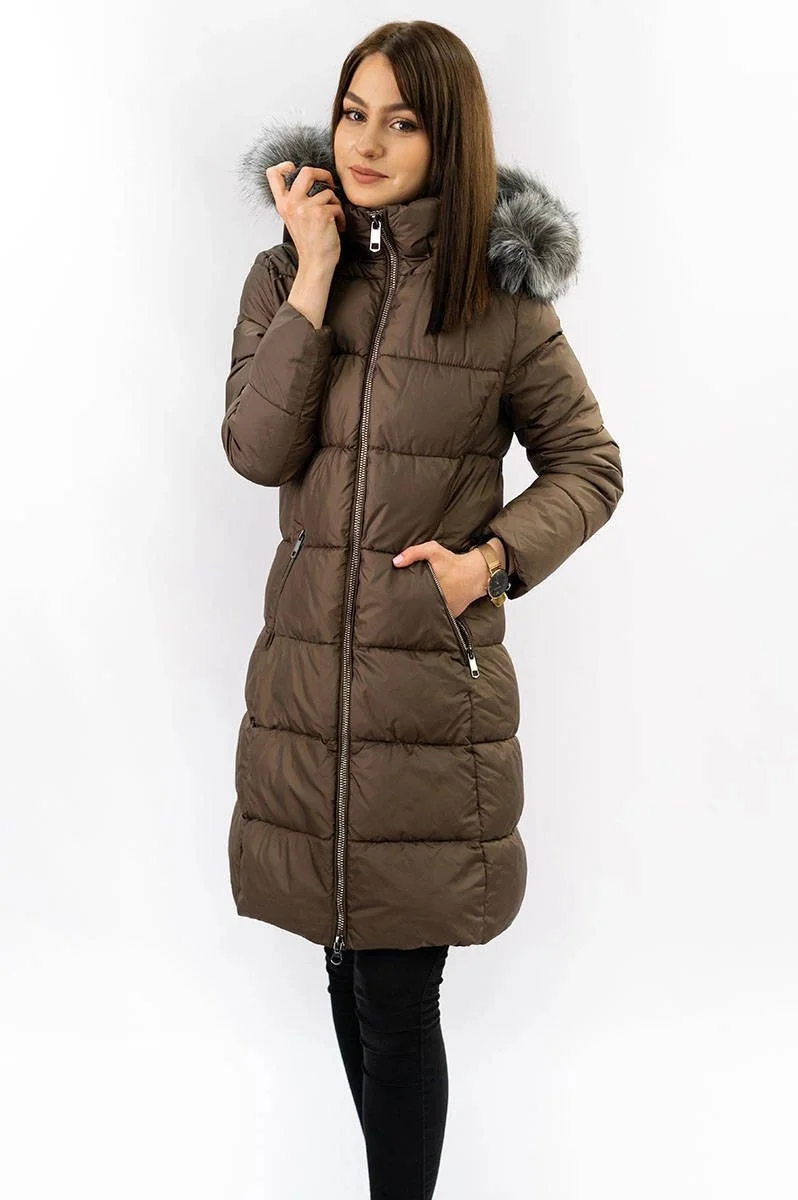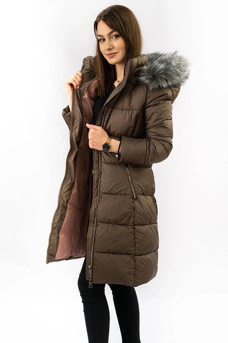Přidání recenze k Hnědá dámská zimní prošívaná bunda (7701)