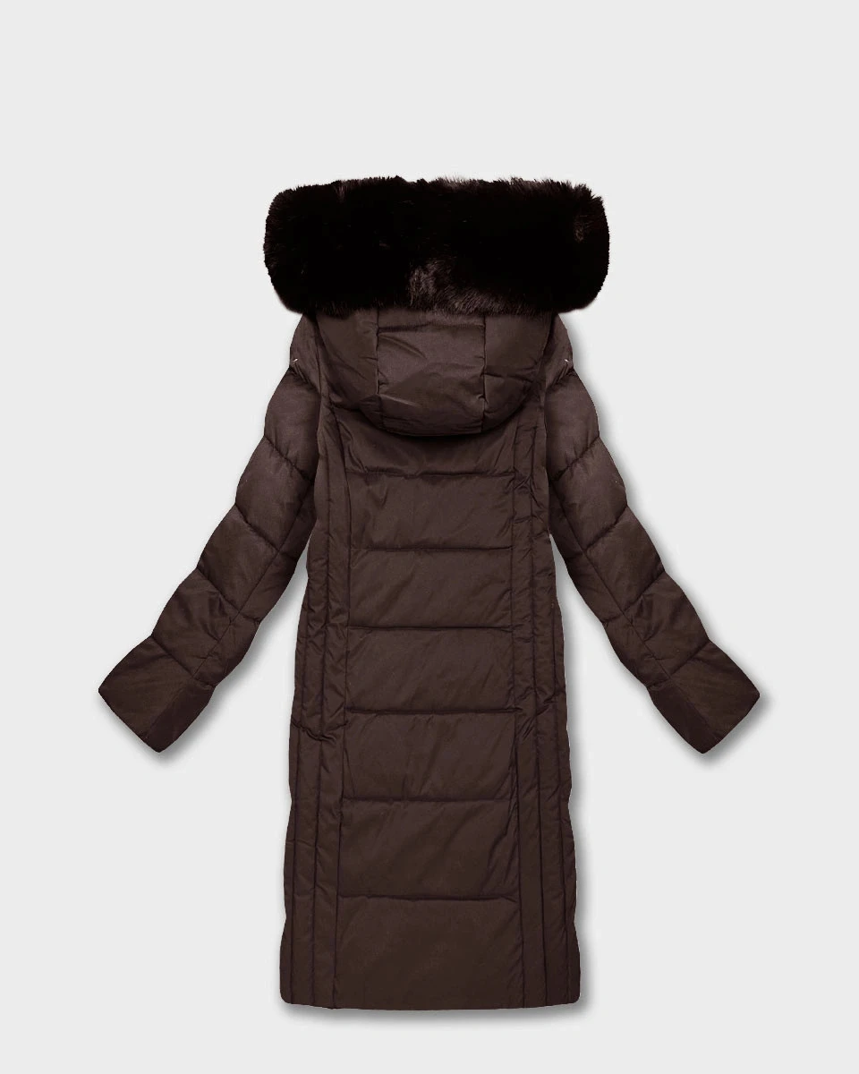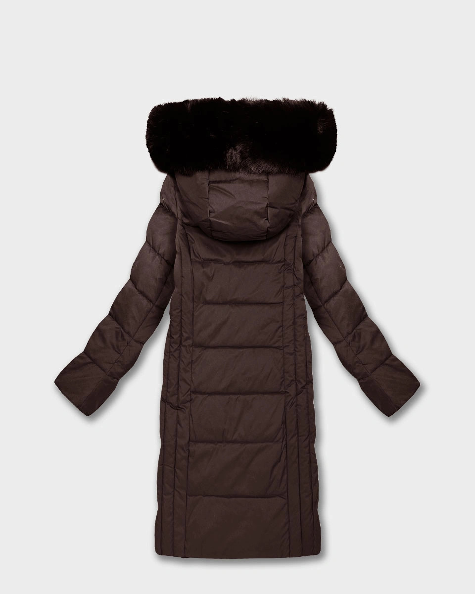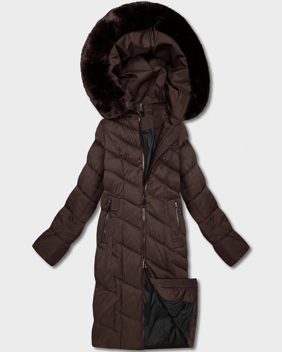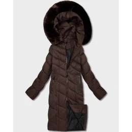 Hnědá dlouhá dámská bunda s kapucí (7662#-F01)