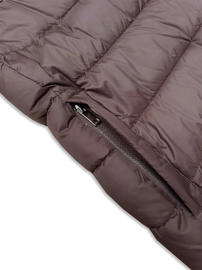 Bunda má volný střih, je zateplená syntetickou péřovou výplní, má pásek pro zavazování, dvě kapsy se zapínáním na zip a zapíná se dvousměrným zipem a panelem s patentkami. Model má kapuci, kterou není možné odepnout. Na koncích rukávů jsou skryté stahovací lemy.