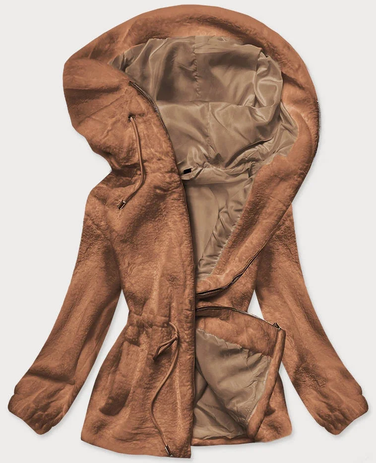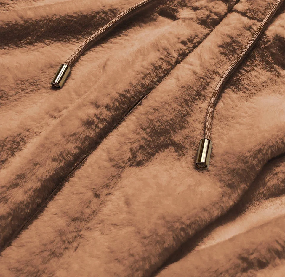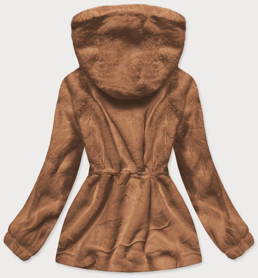 Hnědá kožešinová dámská bunda s kapucí (BR9596-12)