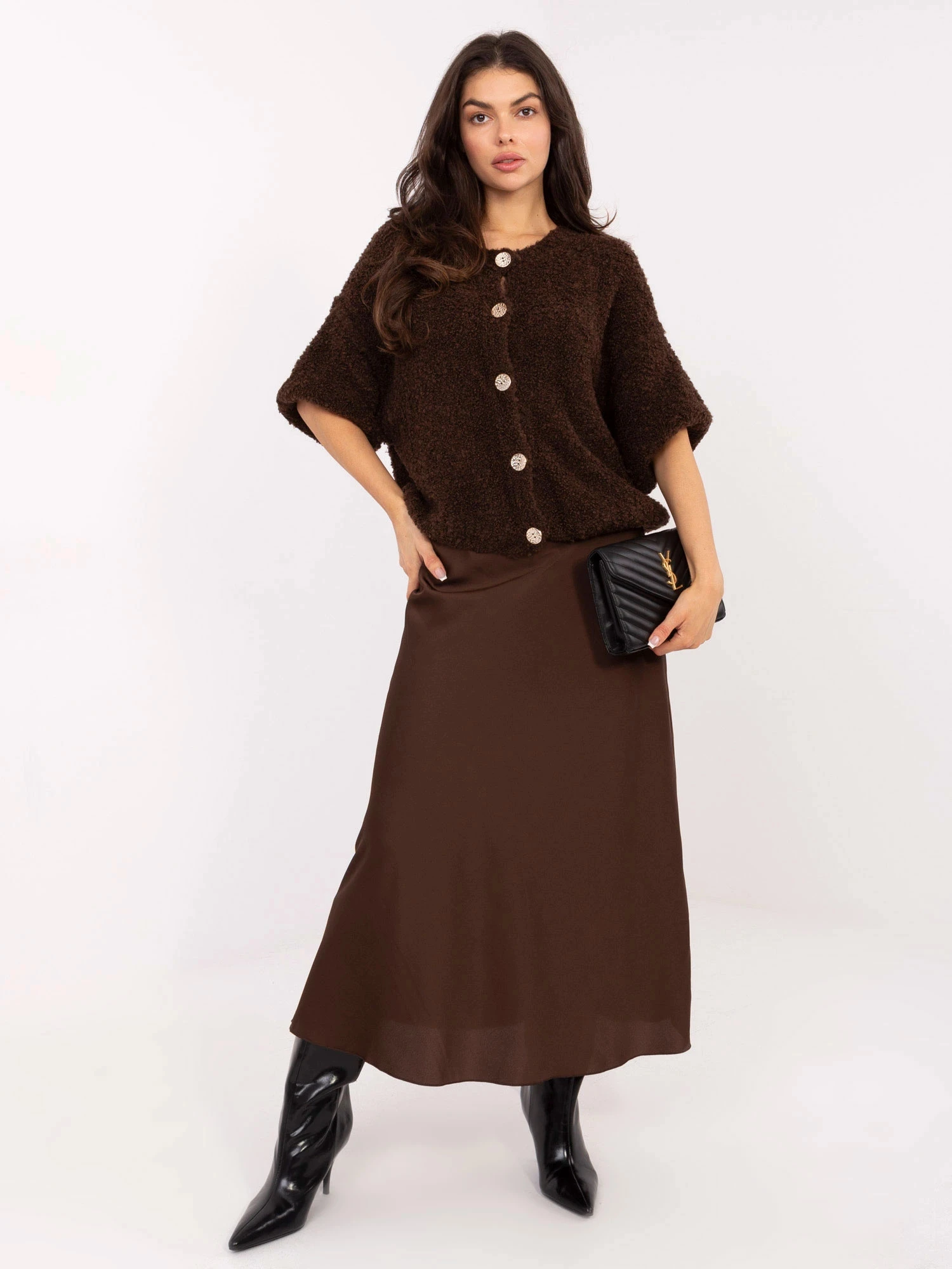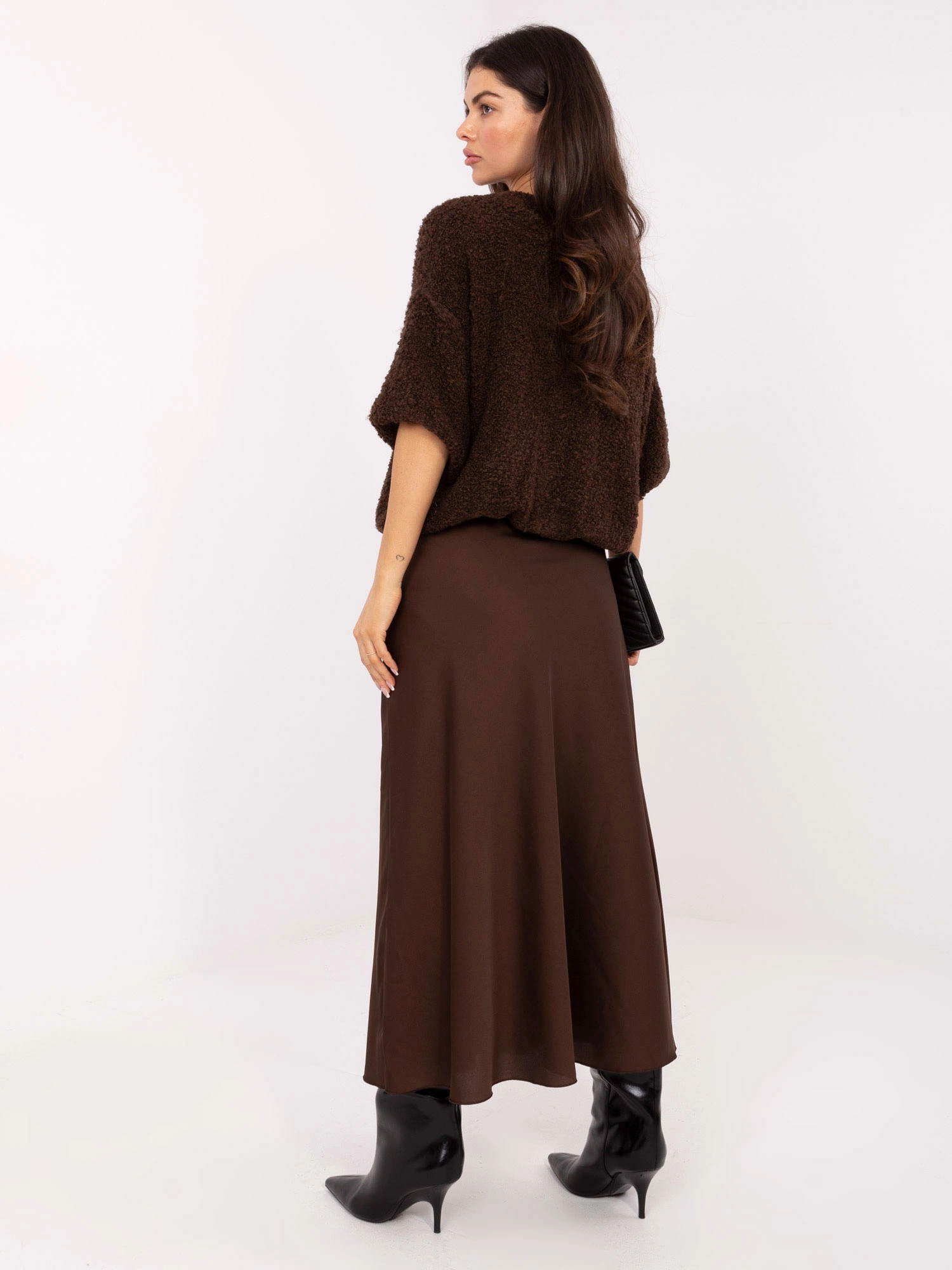 3. Hnědá saténová maxi sukně (A2797)