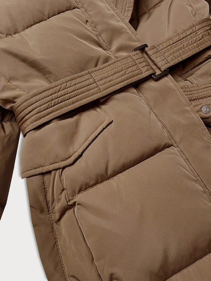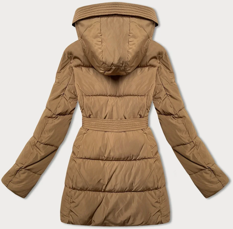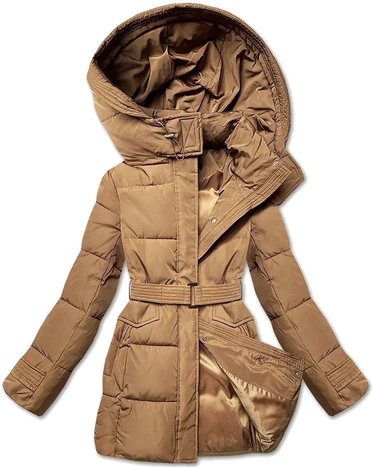 Hnědá vypasovaná zimní bunda s opaskem (23MY-207)