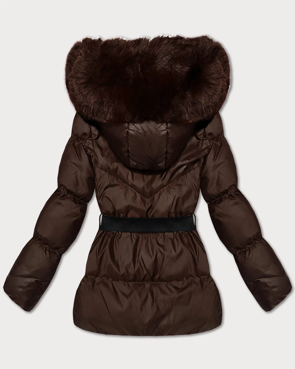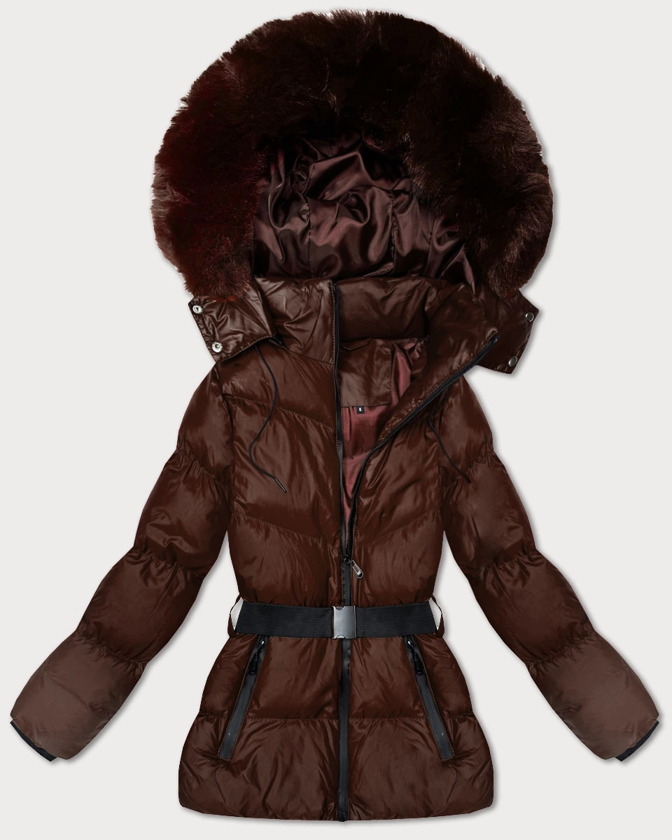 Hnědá zimní bunda s kapucí a s opaskem model 21479124 - J.STYLE