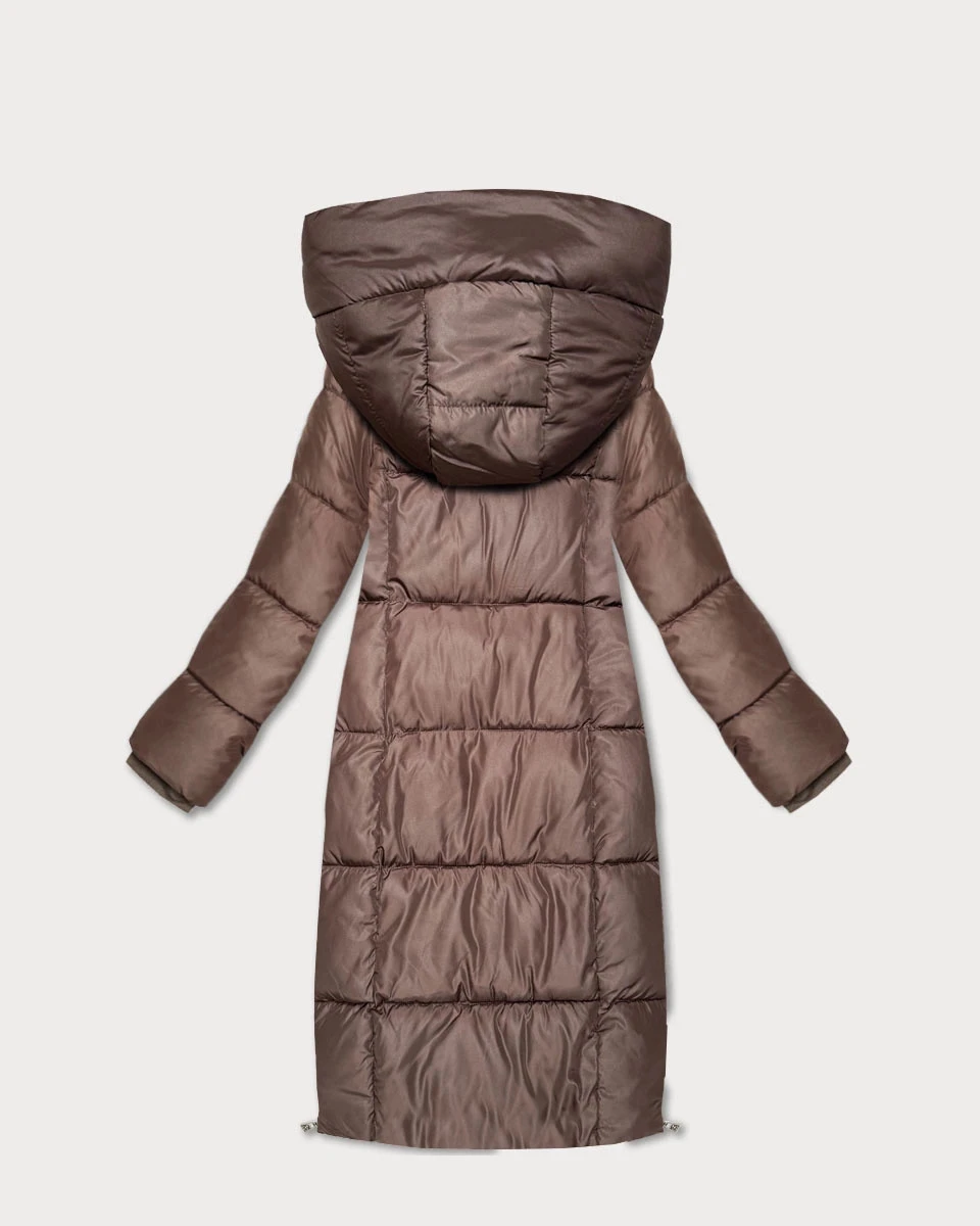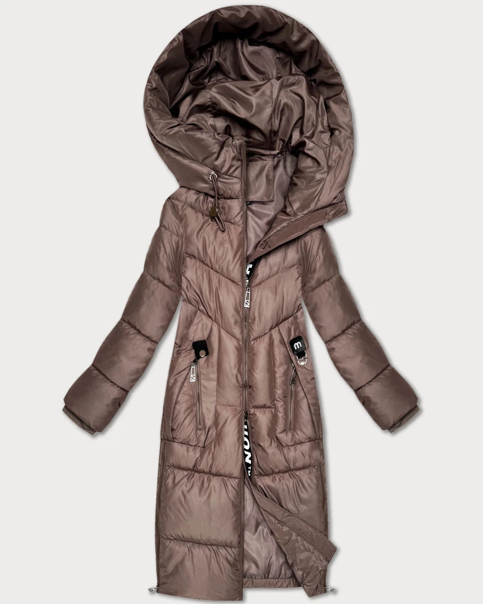 Hnědá zimní vypasovaná bunda v délce do poloviny stehen S'West (B/R8535-48)