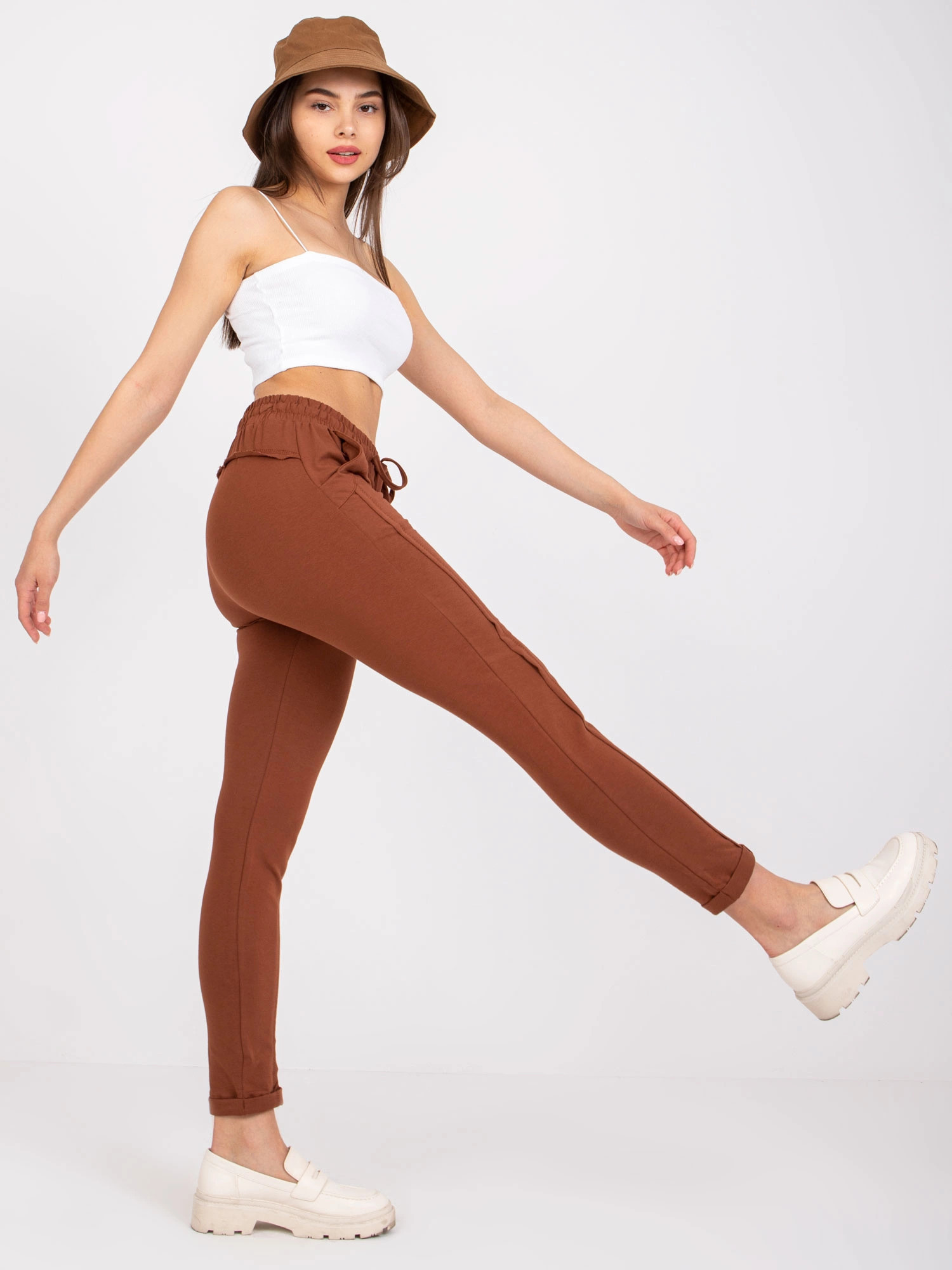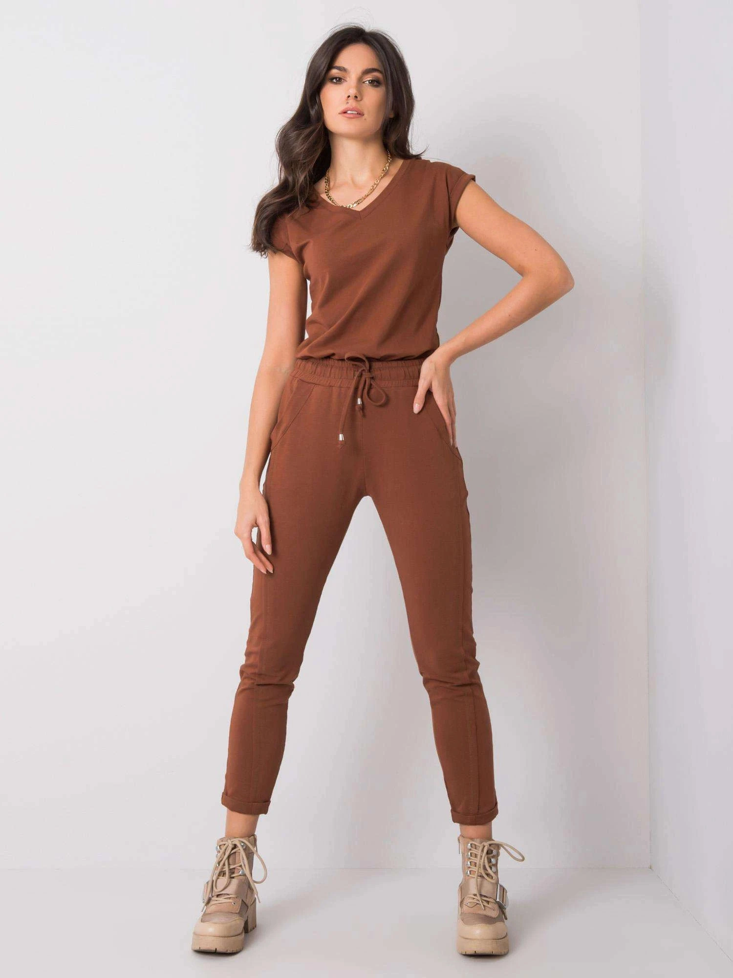 Hnědé dámské úpletové kalhoty typu chino (3589.62)