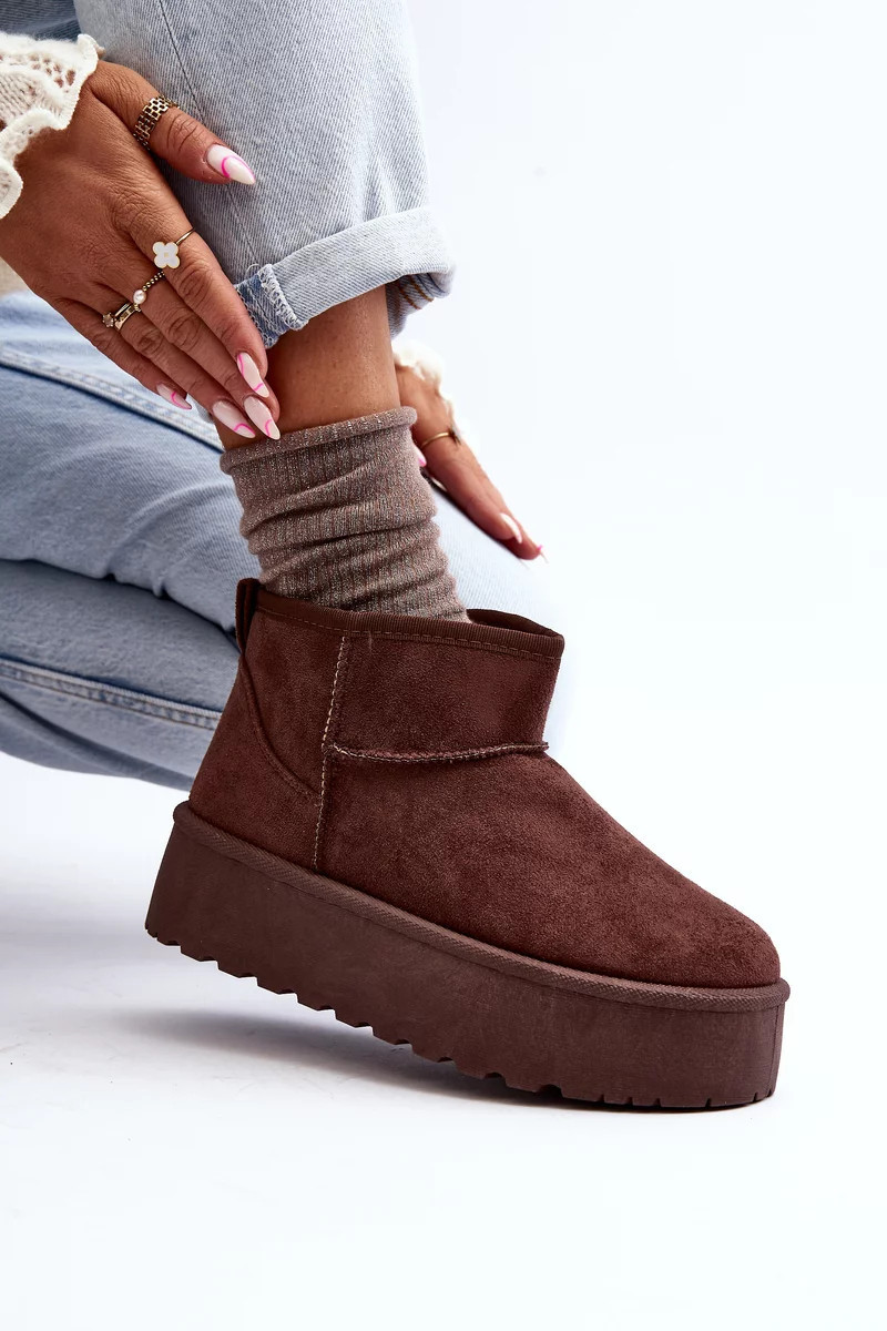 Dámské sněhule jsou jako stvořené do mrazivých dnů. Vyrobeno z ekologického semiše. Vnitřek bot je zateplen hustou, ekologickou kožešinou. Tento klasický model lze sladit s mnoha styly. Kozačky mají masivní platformu, která je dokonale izoluje od země. Při výběru velikosti se řiďte tabulkou velikostí.