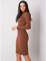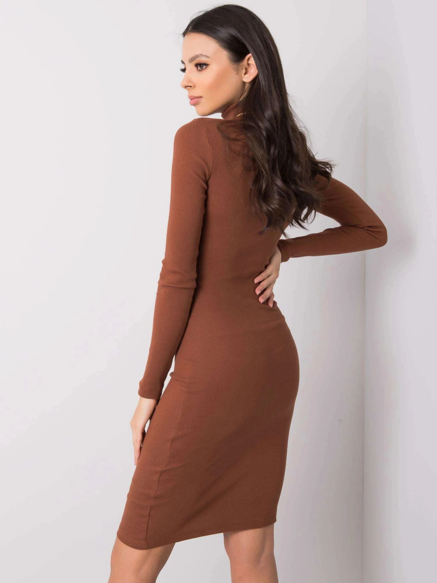 Hnědé vypasované žebrované šaty s rolákem Rue Paris (5133)