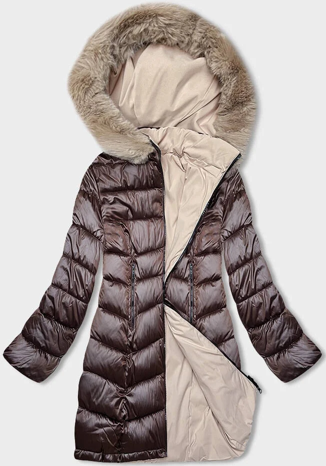 Hnědo-béžová dámská zimní oboustranná bunda s kapucí (B8202-14046)