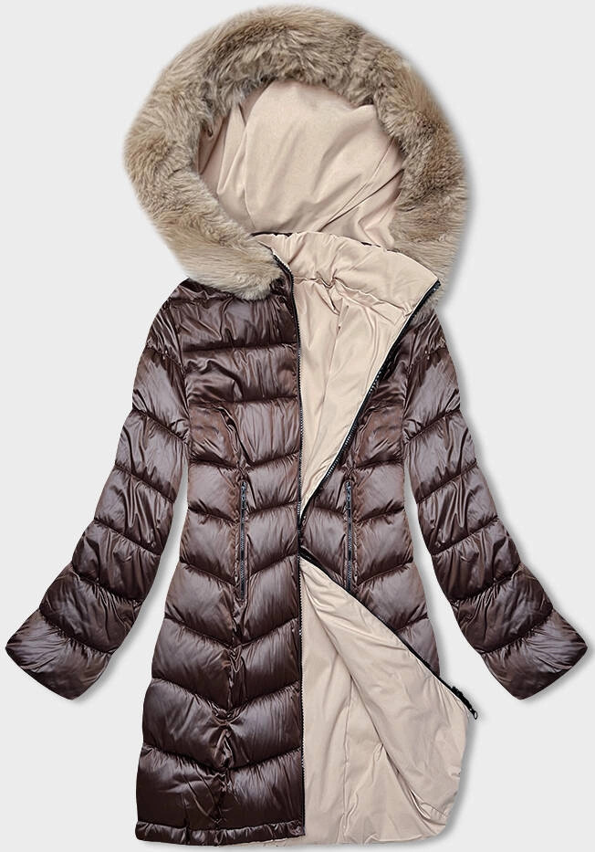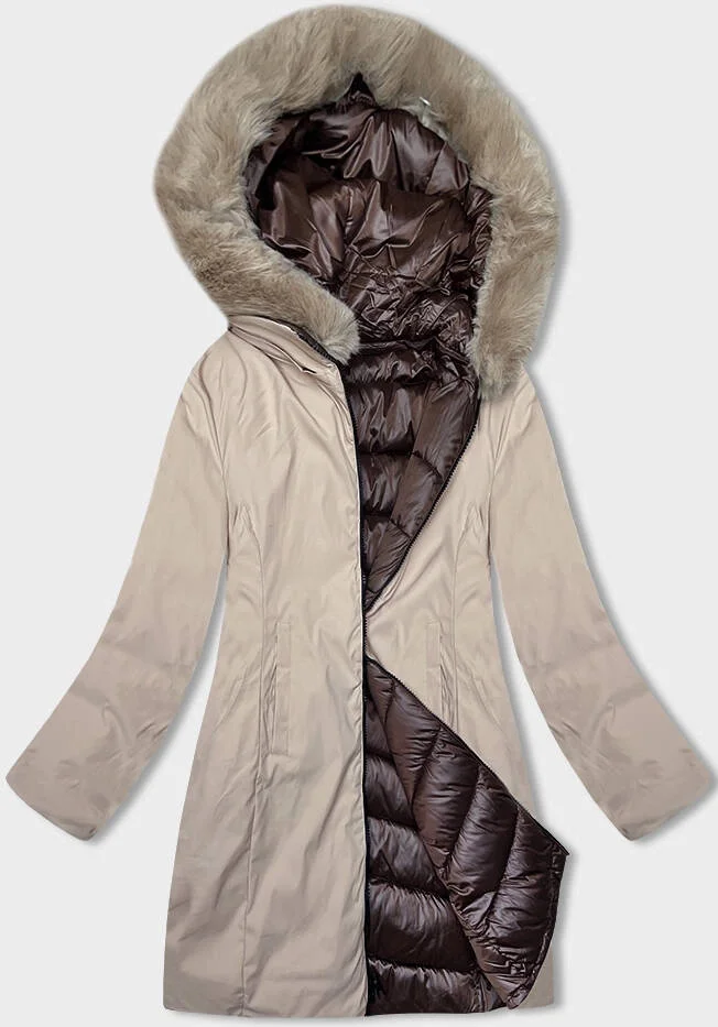 Hnědo-béžová oboustranná dámská zimní bunda s kapucí (B8203-14046)