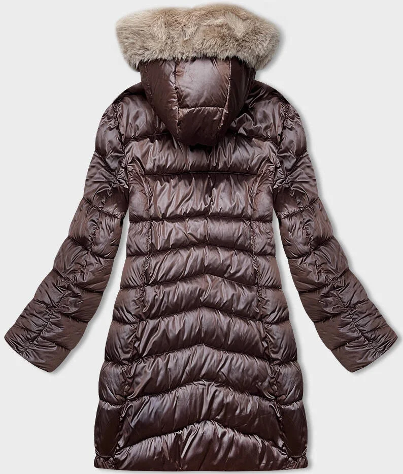 Přidání recenze k Hnědo-béžová oboustranná dámská zimní bunda s kapucí (B8203-14046)
