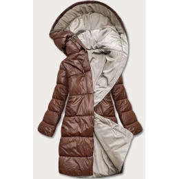 Hnědo/cappuccino dlouhá oboustranná zimní bunda (l22-9852-300/62)