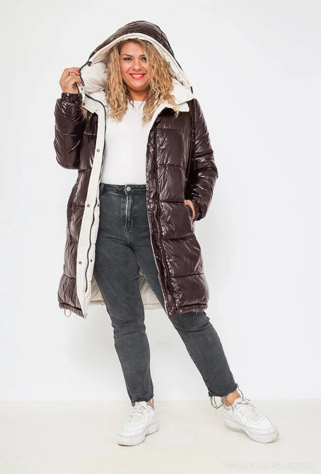 Přidání recenze k Hnědo-ecru hrubší oboustranná dámská zimní bunda (V767)
