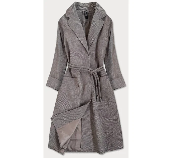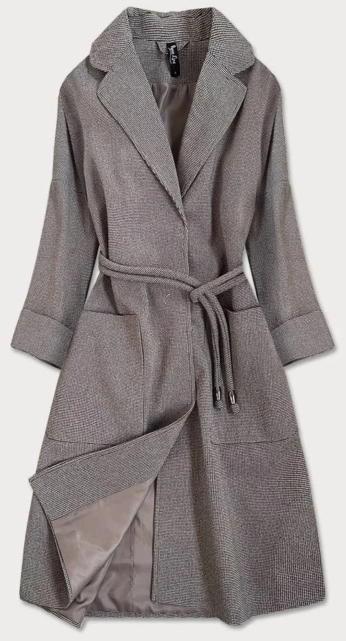 Hnědý dámský kabát se 3/4 rukávy model 16148287 - ROSSE LINE