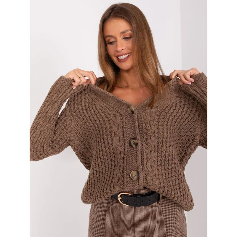 Hnědý dámský svetr bez knoflíků s kostkami (BA-SW-8001-1.16P)