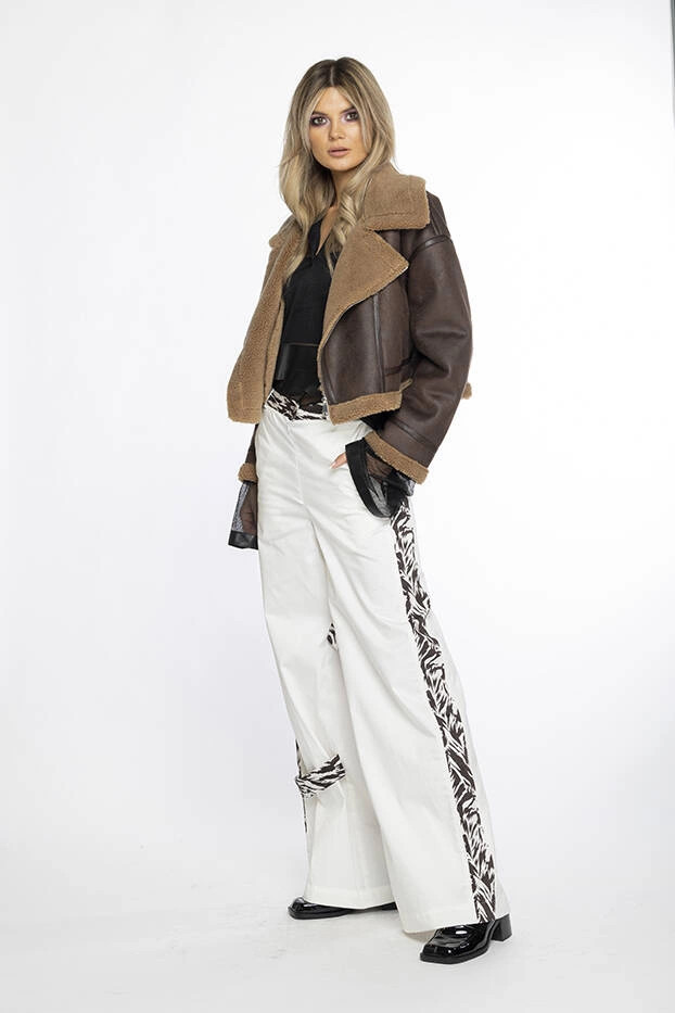 Kožich má uvnitř kožešinovou podšívku, má dvě kapsy bez zapínání a zapíná se zipem. Model má délku do pasu.