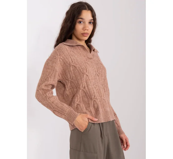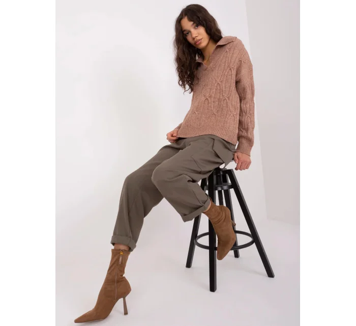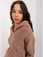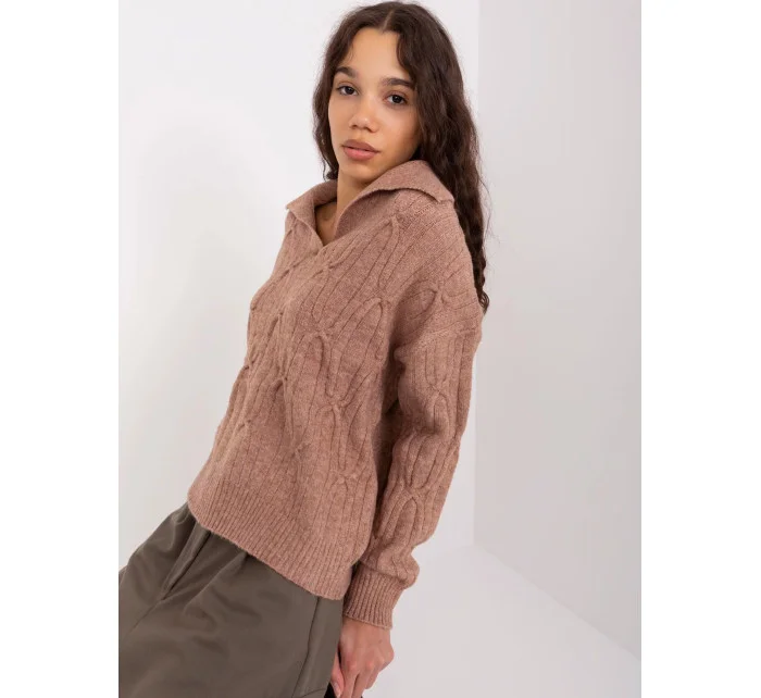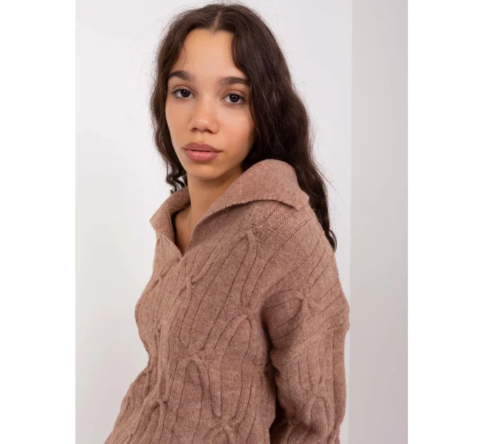 Dámský svetr z mohéru volného střihu s výstřihem do V hnědý