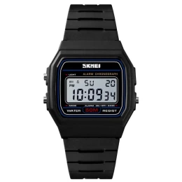 Elegantní černý doplněk, který kombinuje stylový minimalismus s funkčností. Díky LED podsvícení, budíku a stopkám se skvěle hodí pro váš každodenní rytmus a nenápadně vám pomůže zorganizovat den. Lehký polyuretanový řemínek pohodlně sedí na zápěstí, takže je praktický a stylový.