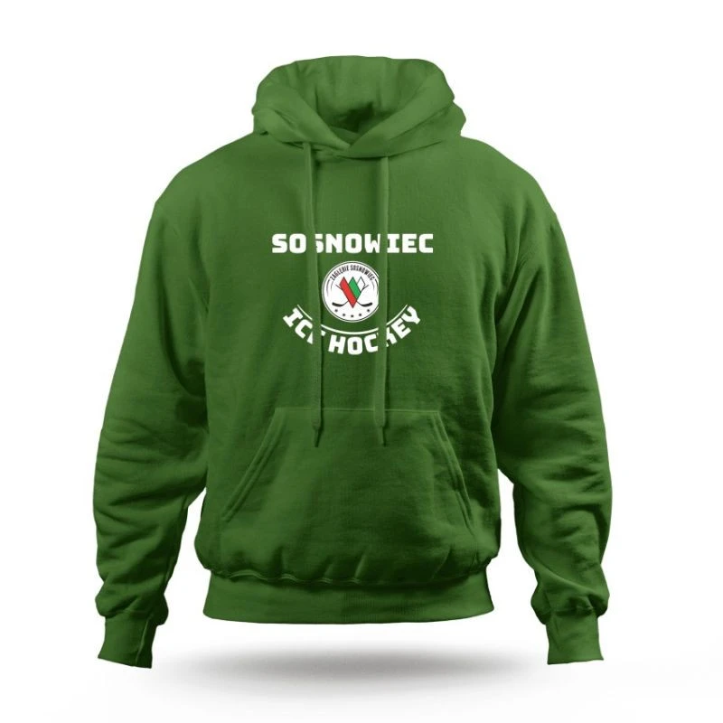 bluza Zagłębie Sosnowiec Ice Hockey Stylowa bluza, która doskonale podkreśla Twoją pasję do hokeja i miłość do drużyny Zagłębie Sosnowiec. Idealna do noszenia na mecze i na co dzień, zapewnia komfort oraz ciepło, zachowując jednocześnie sportowy, dynamiczny wygląd. Główne cechy: Kaptur: Bluza z kapturem dla mężczyzn, wyposażona w pasujący sznurek do regulacji. Kieszeń kangurka: Naszyta kieszeń typu kangur do przechowywania drobnych przedmiotów lub ogrzewania rąk. Ściągacze: Elastyczne ściągacze 2x1 u dołu rękawów i bluzy, zapewniające idealne dopasowanie. Gramatura: 290 g/m², co zapewnia odpowiednią izolację cieplną i wygodę. Materiał: 65% poliester, 35% bawełna – gwarantujący trwałość i wygodę użytkowania. Grafika: personalizacja metodą DTF Nadruk DTF na odzieży Technologia DTF pozwala na drukowanie bezpośrednio na specjalnej folii, która następnie jest przenoszona na tkaninę za pomocą prasy termotransferowej. Dzięki temu uzyskujemy niesamowi