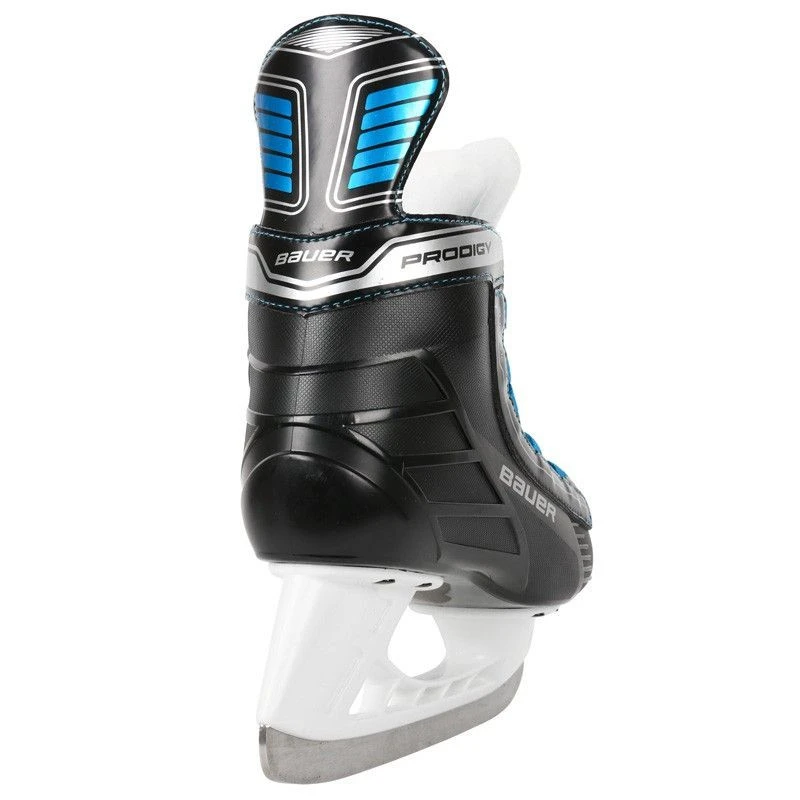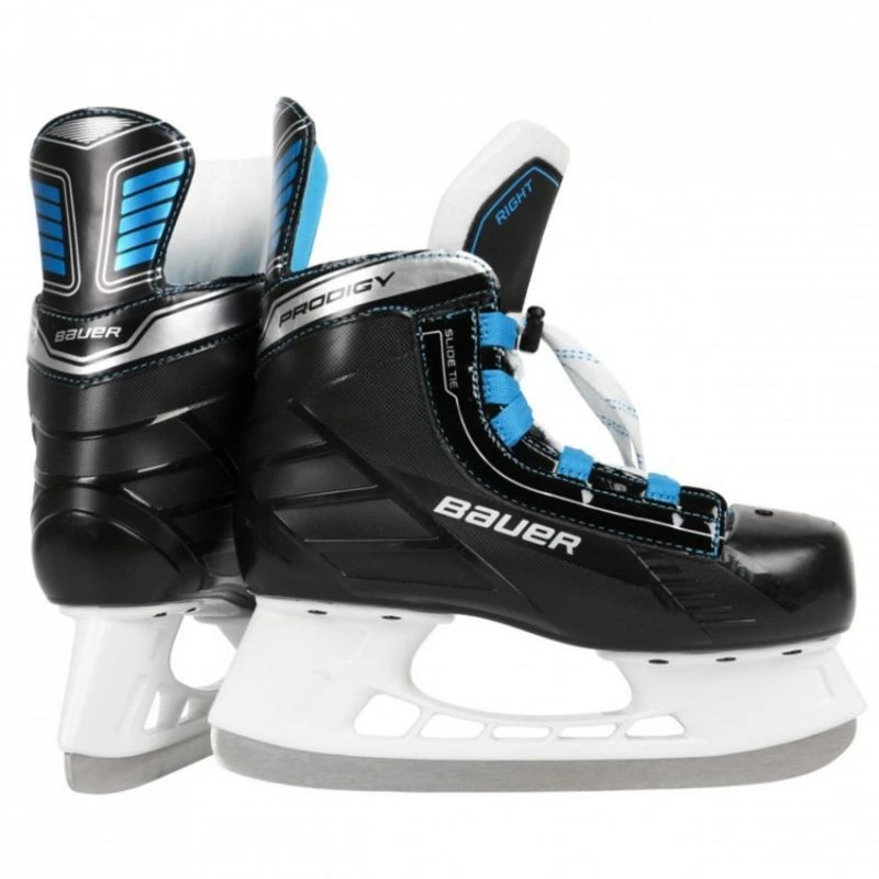 Łyżwy hokejowe Bauer Prodigy Jr Seria produktów Prodigy skupia się na lekkich, regulowanych funkcjach, które zaspokoją młodego gracza, który dopiero zaczyna orientować się w grze. Linia Prodigy, zrodzona z głębokiej wiedzy Bauera na temat hokeja, daje Twojemu dziecku pewność, że wrasta w grę, ciesząc się każdą chwilą. Oparta o zmienną konstrukcję butów ze zintegrowanym podnoskiem, łyżwa z pewnością zapewni wyjątkowe wsparcie dla gracza, który wciąż rozwija zestaw mięśni potrzebny do poruszania się po lodowisku. Wewnętrznie wygodna wyściółka kostki EVA w połączeniu z wyściółką z mikrofibry zapewnia wygodną podstawę, która pomieści prawie każdy rodzaj stopy. To, co sprawia, że łyżwy Prodigy są wyjątkowe, to prostota dla młodszych graczy. Tradycyjny system sznurowania został zastąpiony prostym systemem ściągania i zamykania, co ułatwia napinanie i optymalne dopasowanie. Oznaczone „prawe” i „lewe” ułatwiają graczom naukę zakładania własne